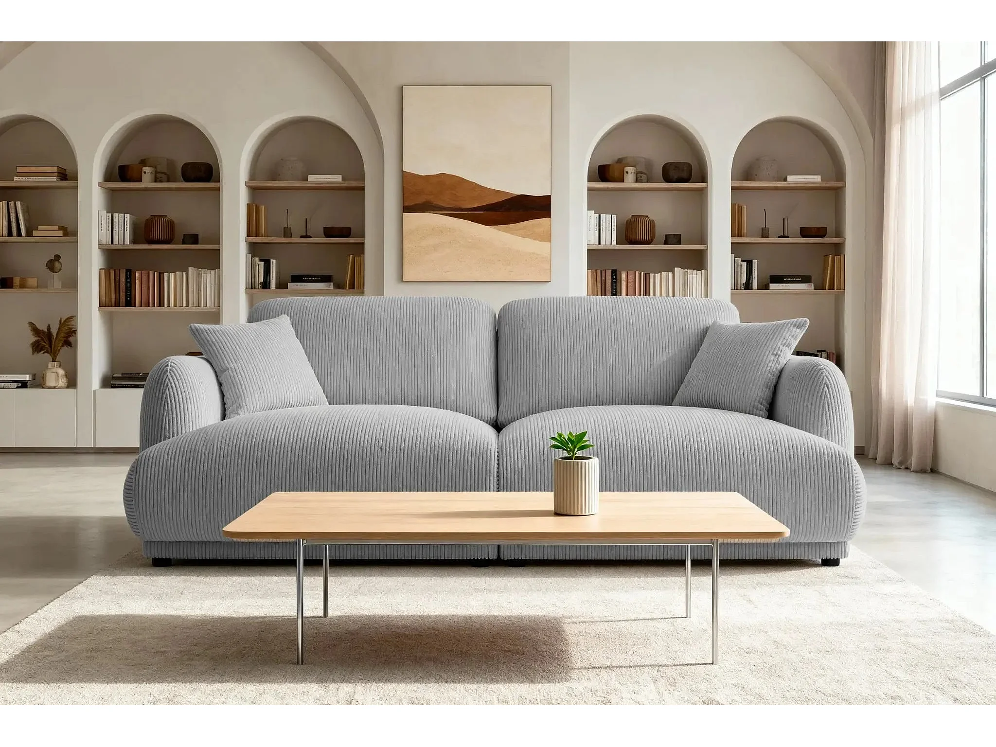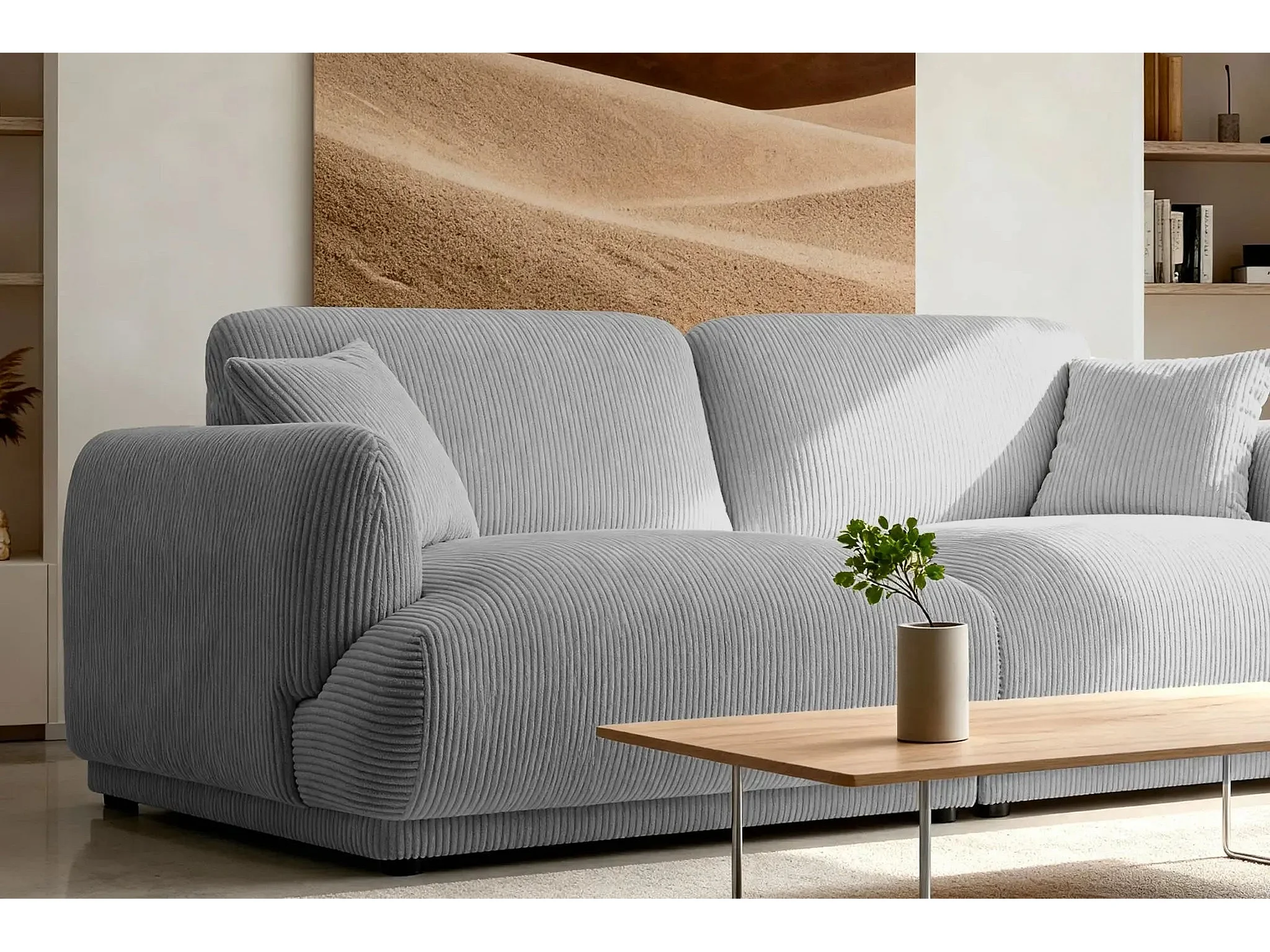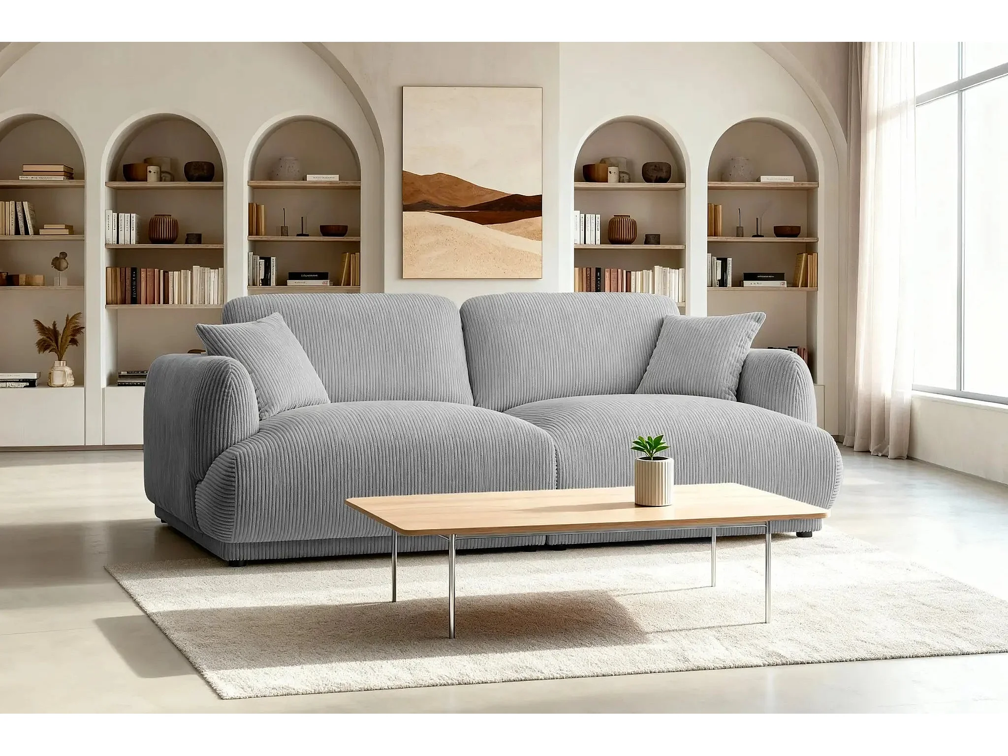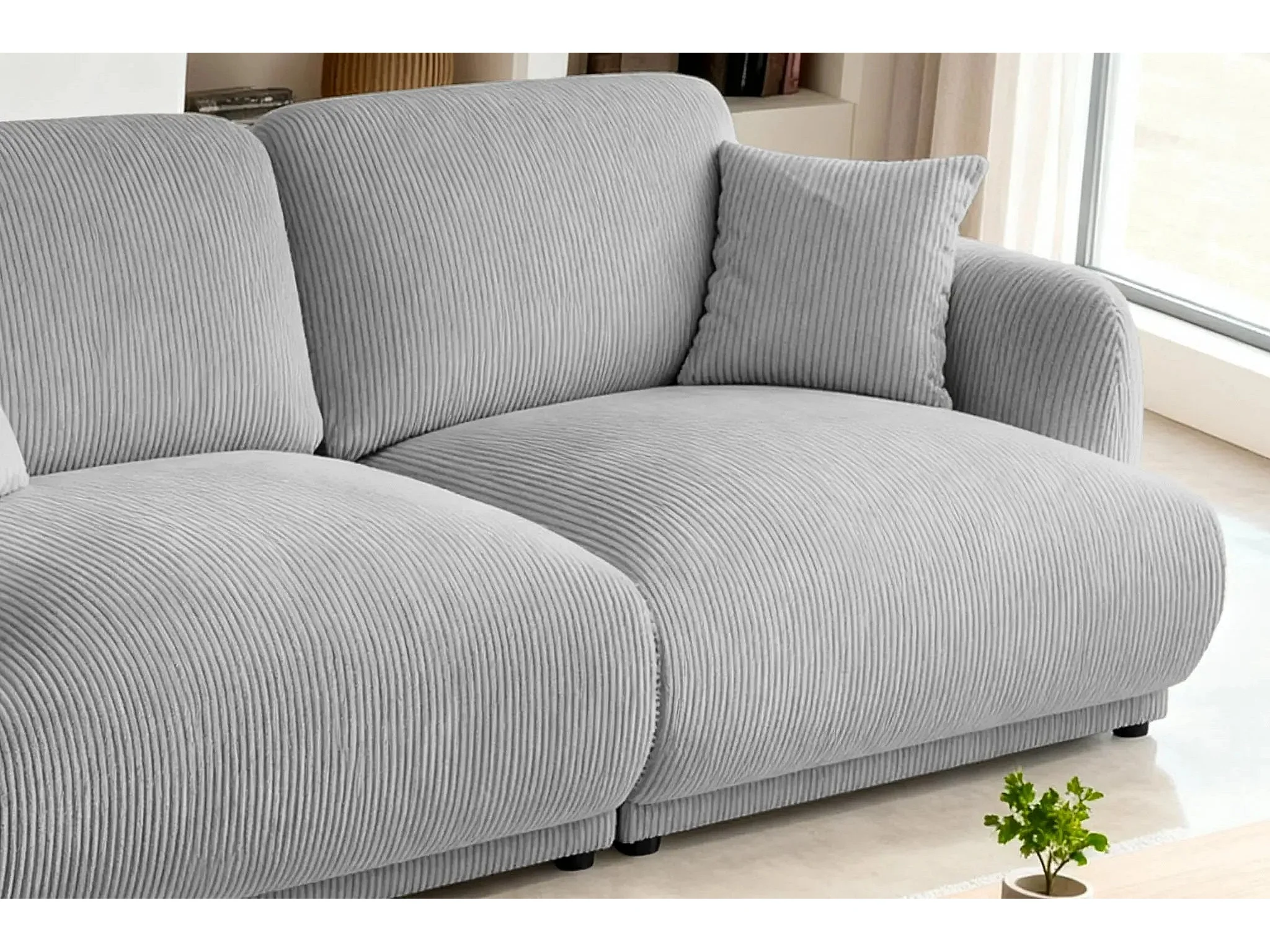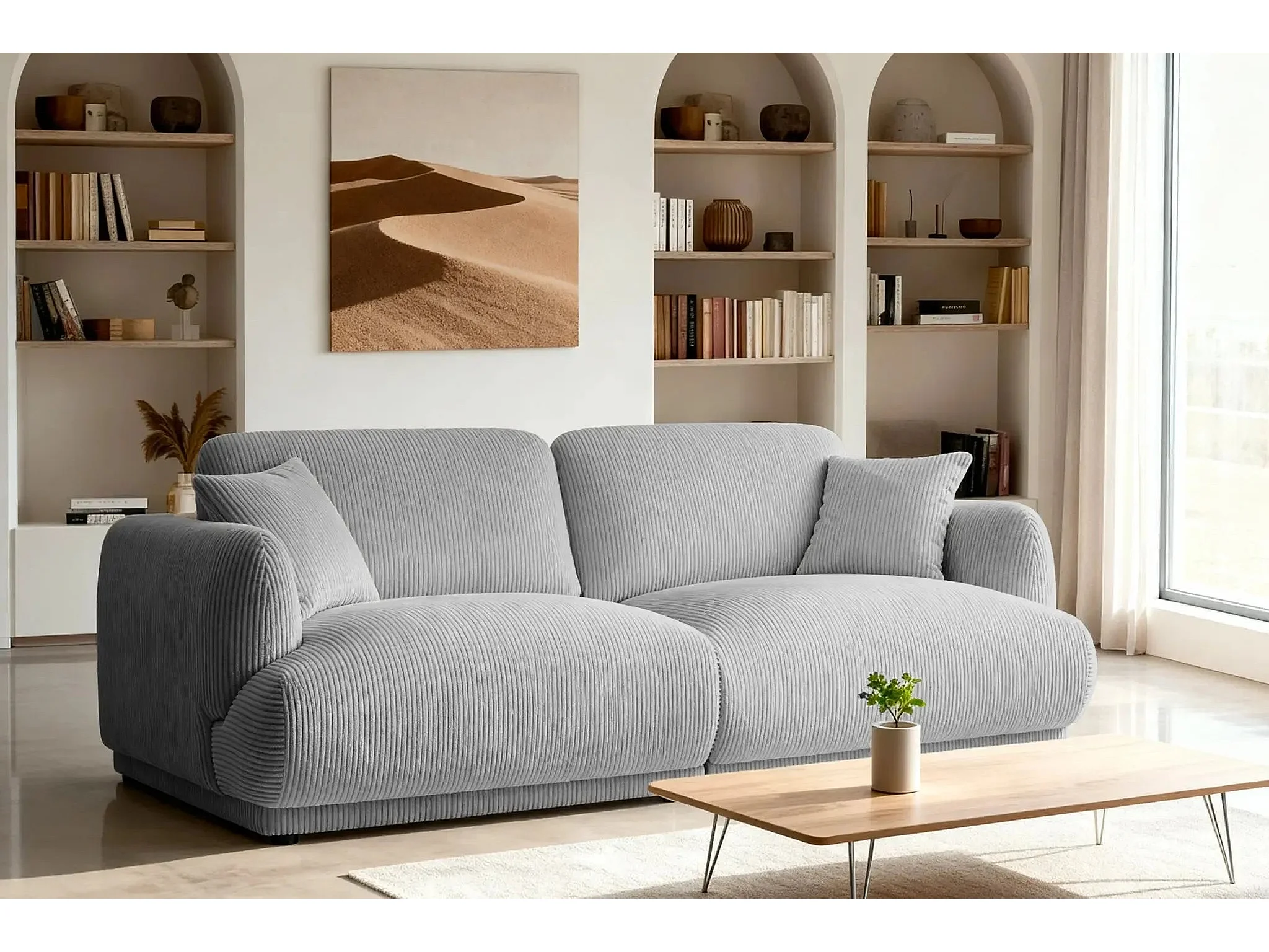 ROSALIE - Canapé droit 2 places velours cotelé 2 places - Gris Clair