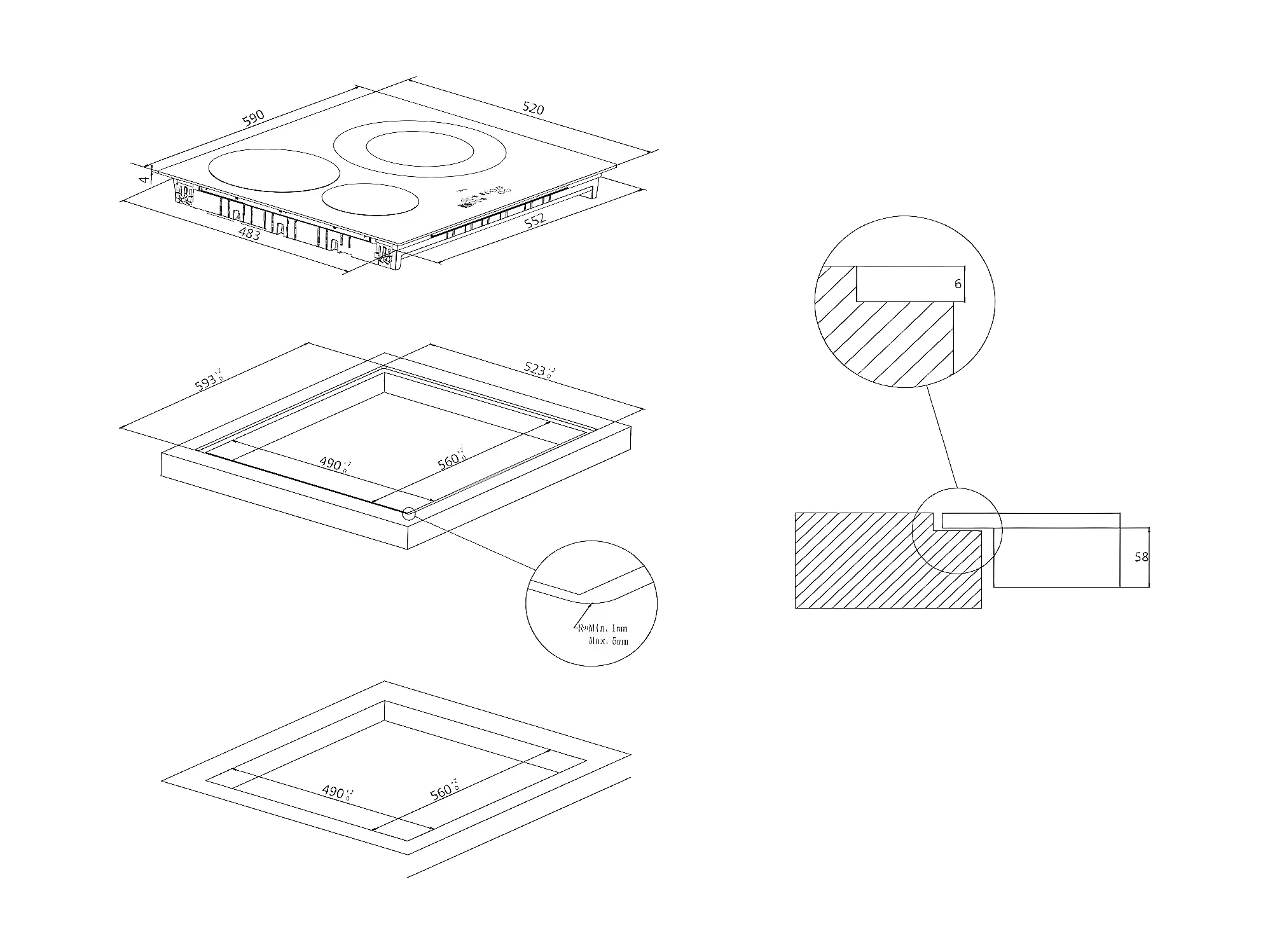 Rosieres Table de cuisson induction 60cm 3 feux 7200w noir - RI633C/M1