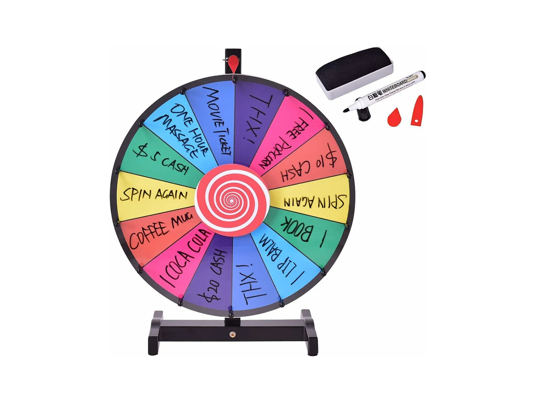 Roue de la fortune 18 pouces avec trépied 14 slot roue de loterie avec stylo effaçable