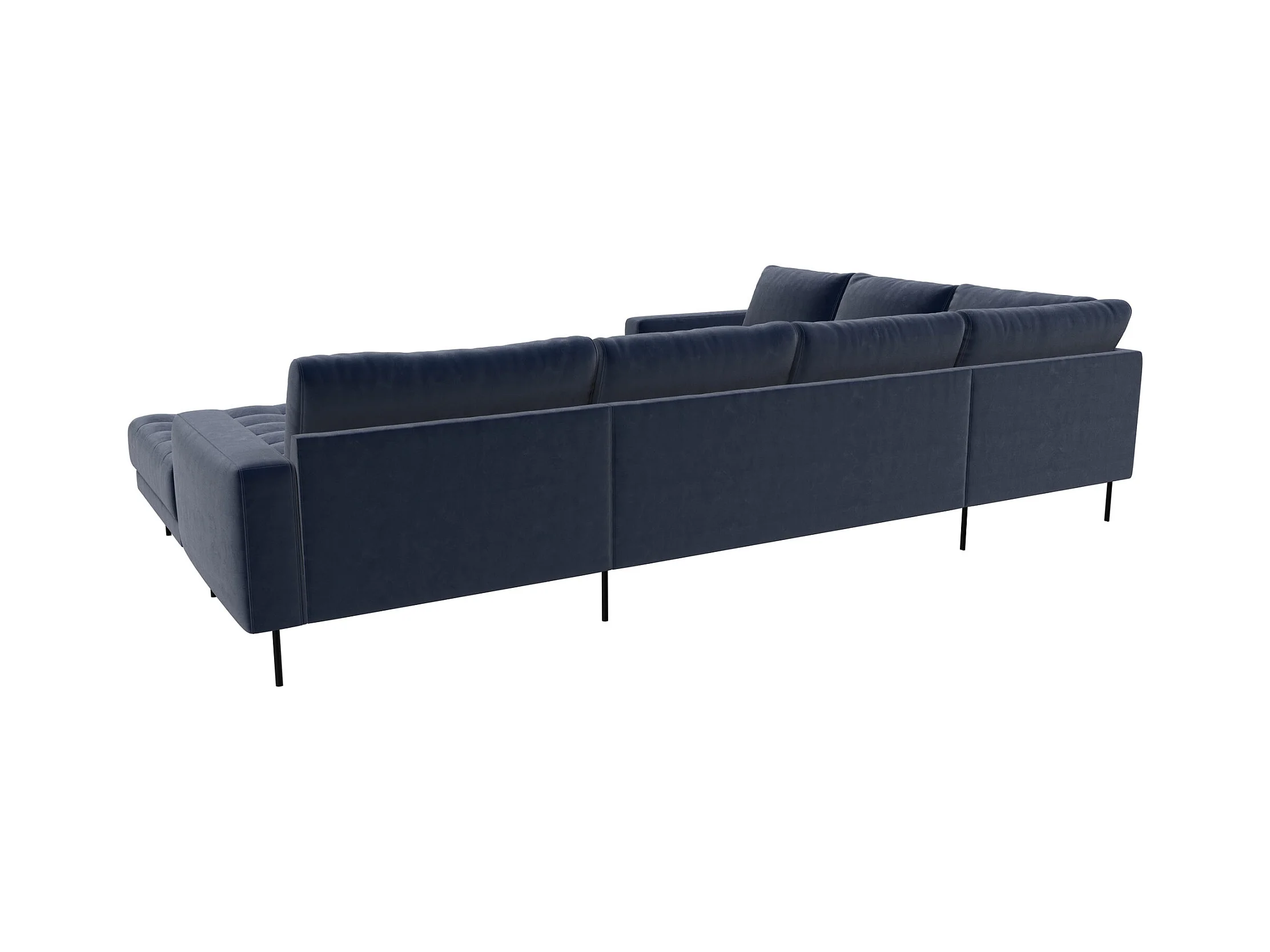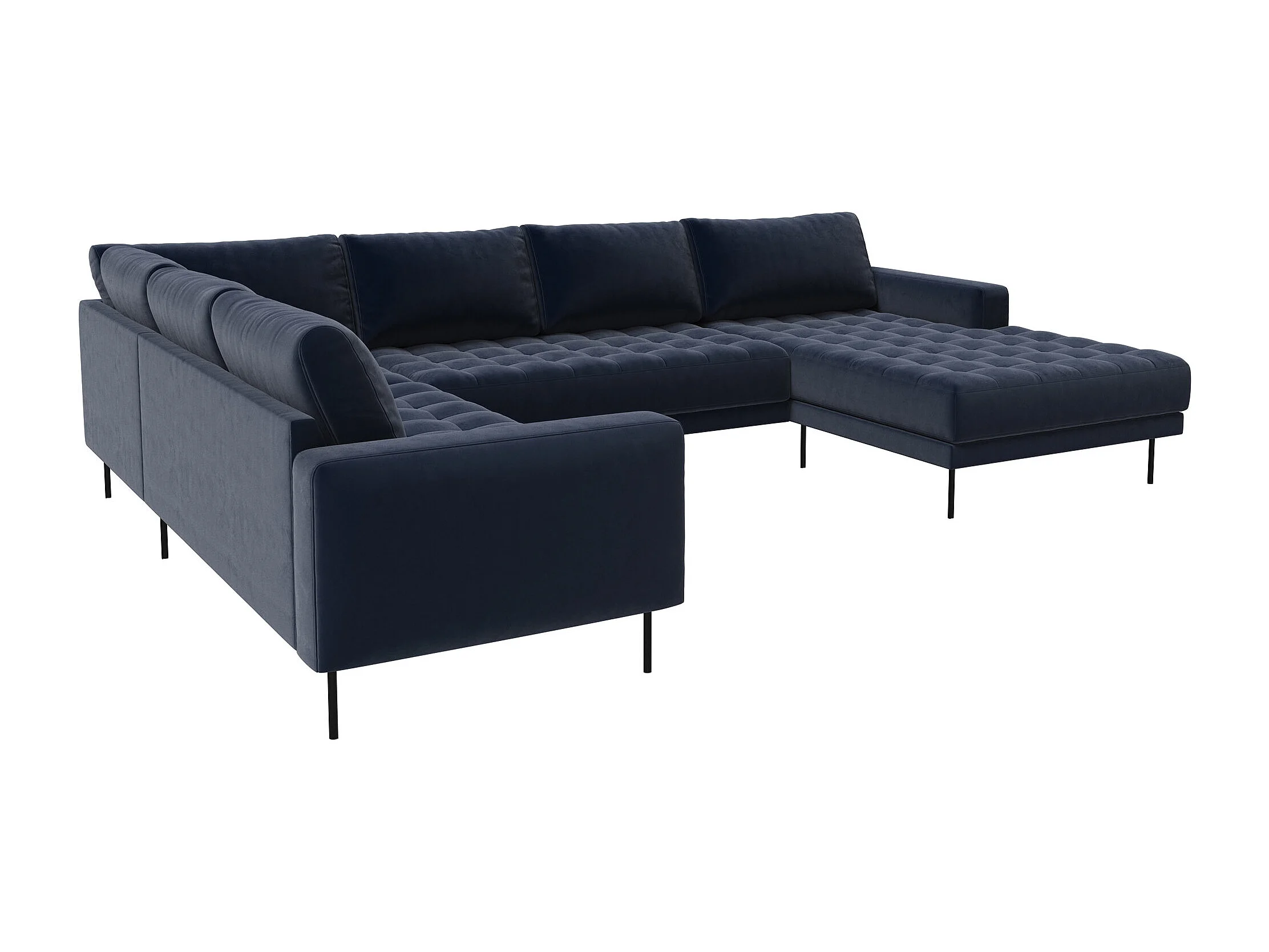Rouge Canapé d'angle avec chaise longue et pieds noirs.