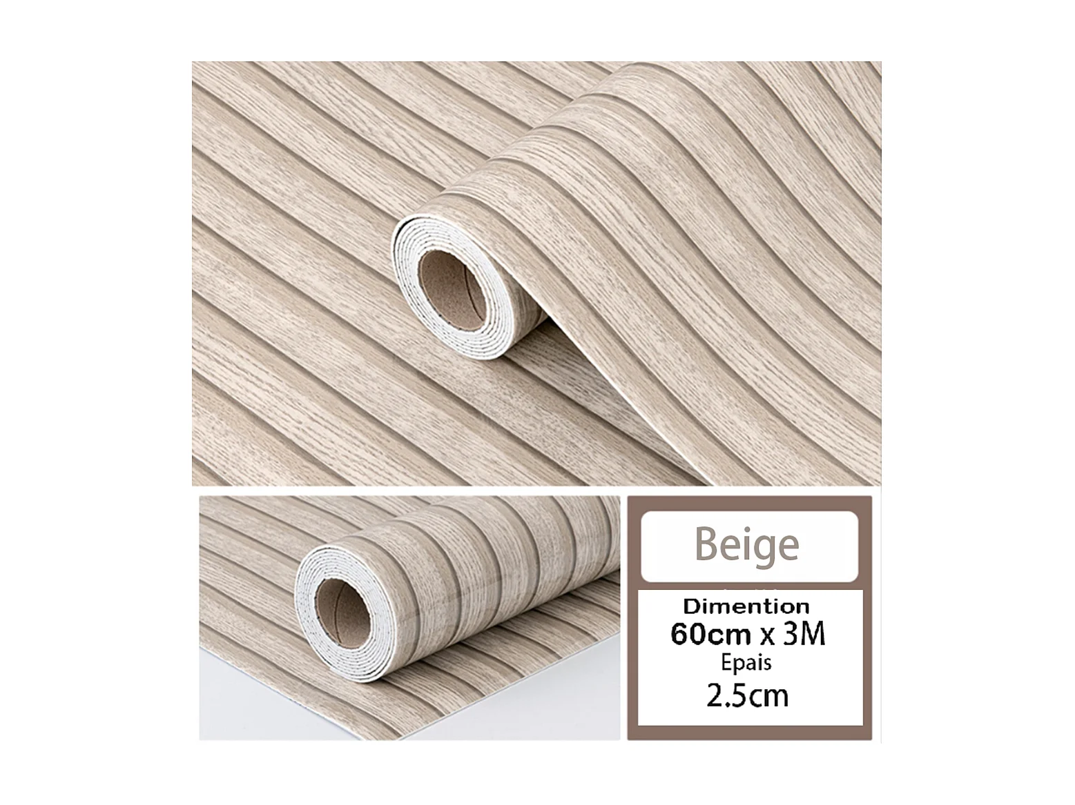Rouleau de papier peint autocollant 3D PVC 60 cm x 3 m Imitation bois Beige Résistant à l'eau et à l'humidité