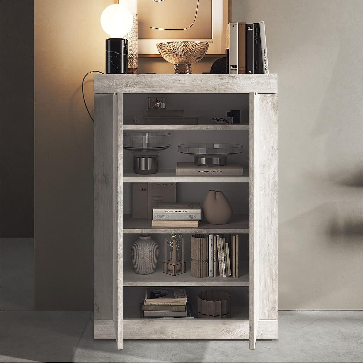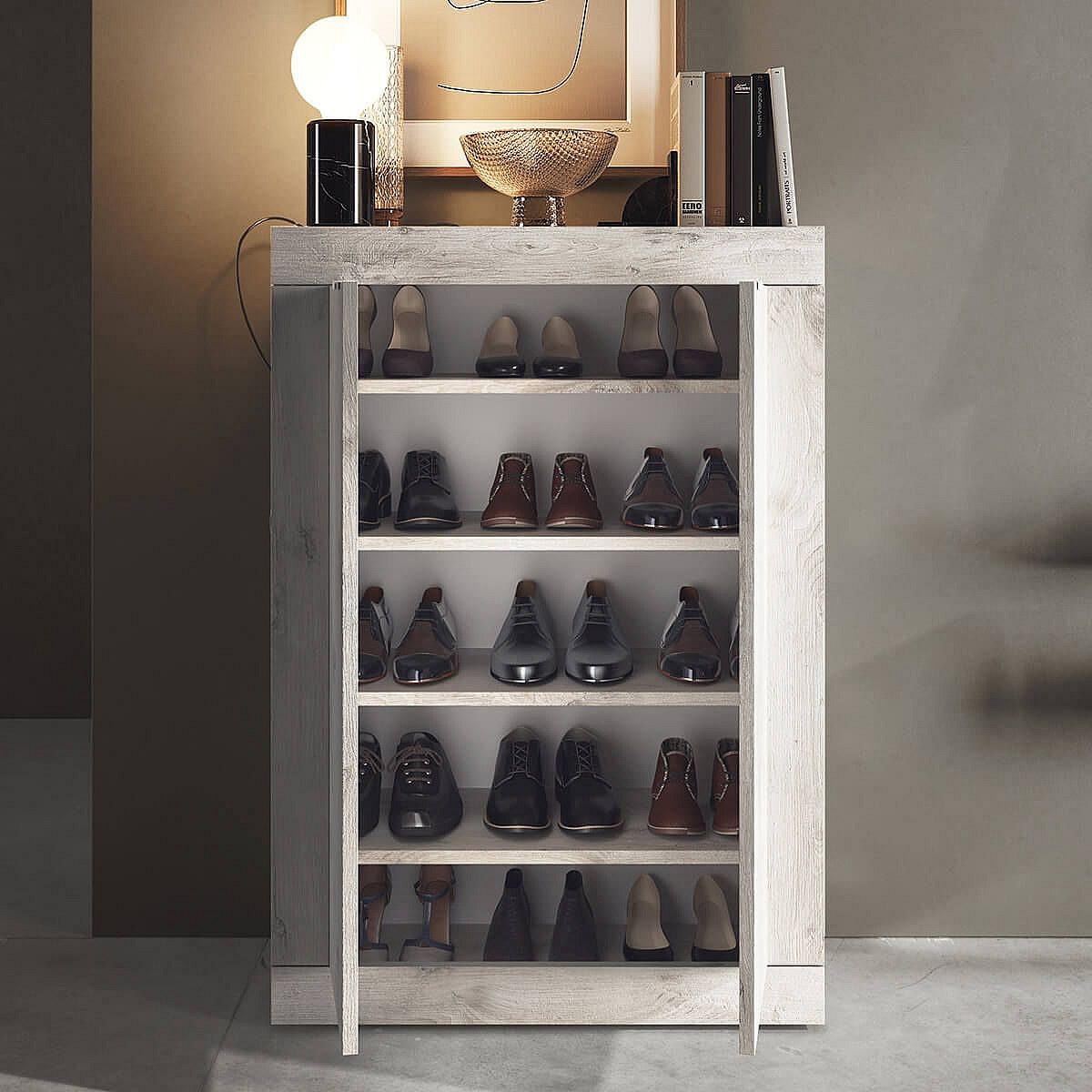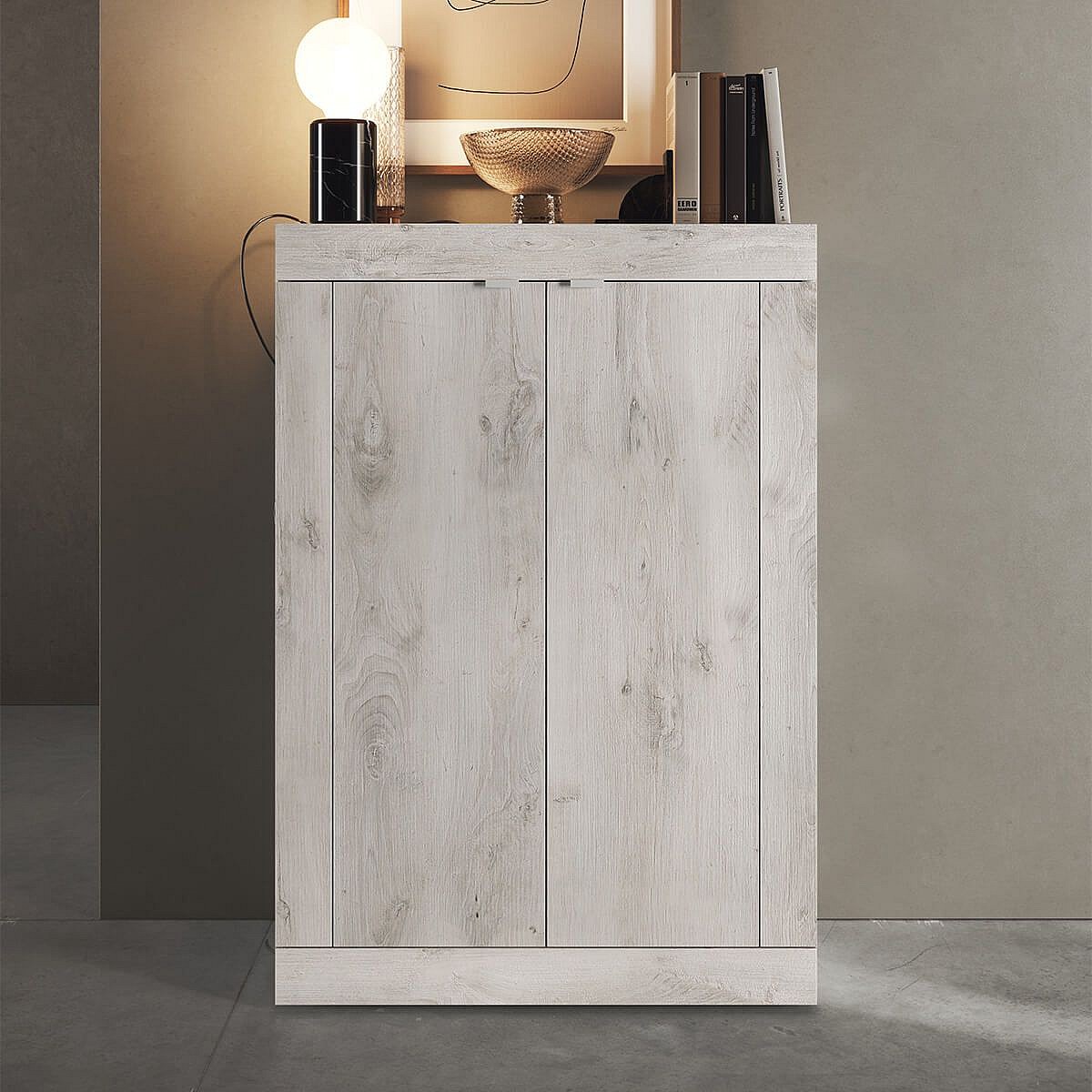 ROVICA - Meuble d'entrée 2 portes 4 étagères aspect bois blanchi