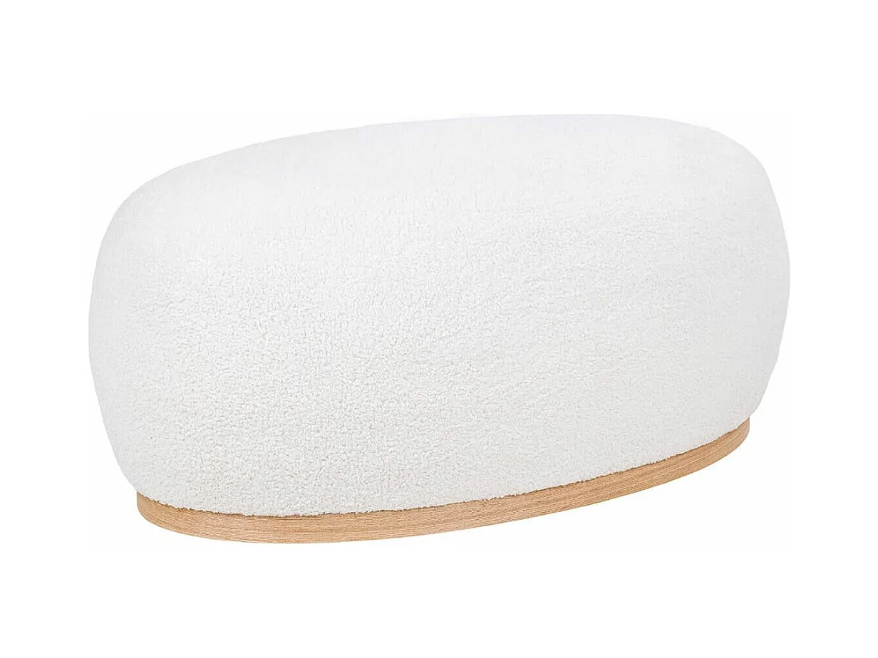 ROVIK - Pouf Ovale en Tissu Bouclé Blanc Socle en MDF