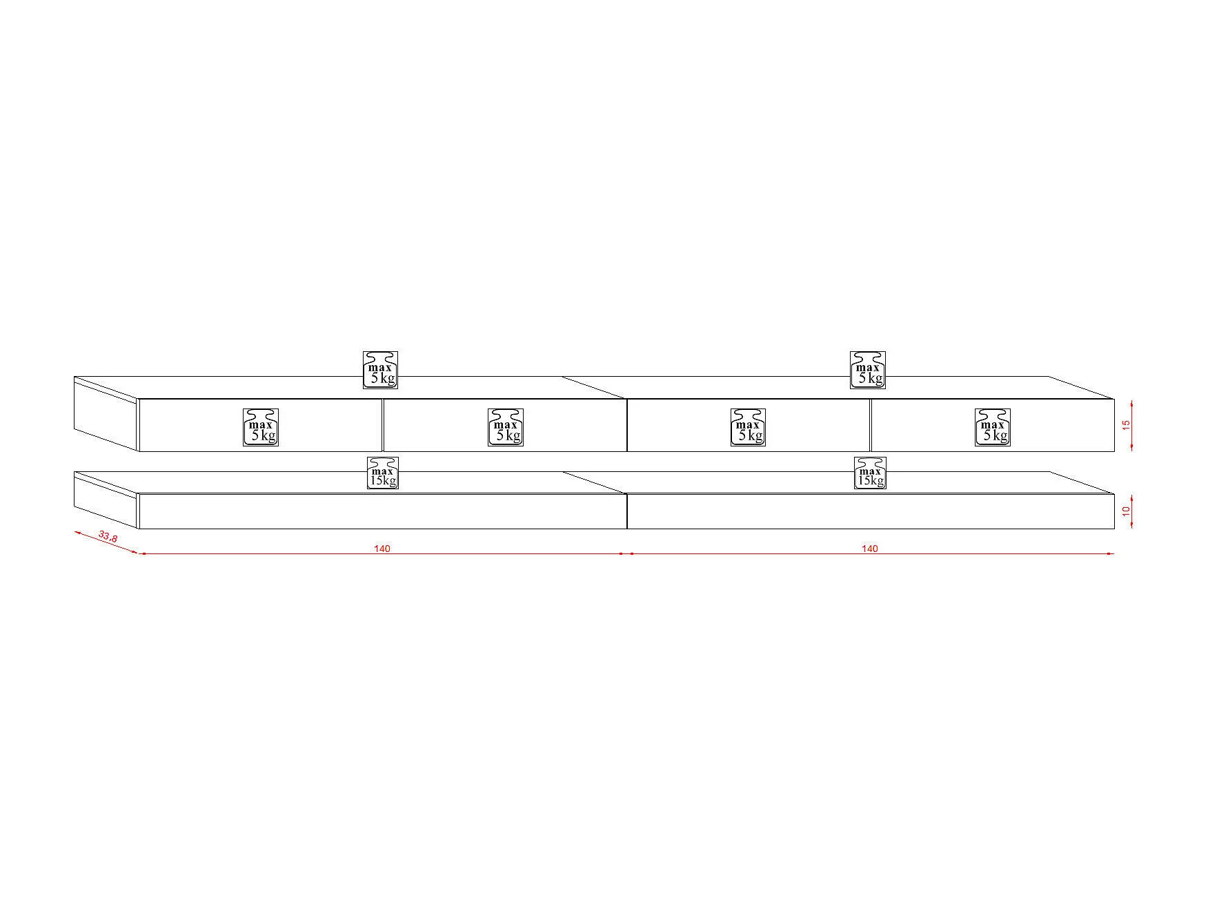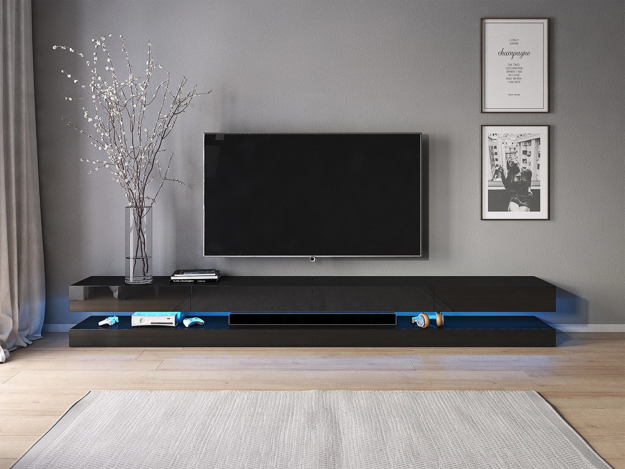RTV Fly DOUBLE 280 Quatre tiroirs noir avec le devant en noir brillant +LED