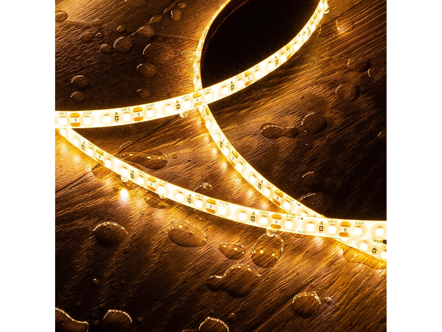 Ruban LED 12V SMD 120 LED/m 5m 10W/m 1000lm/m Largeur 8mm Coupe 2.5cm IP65 2700K Blanc chaud
