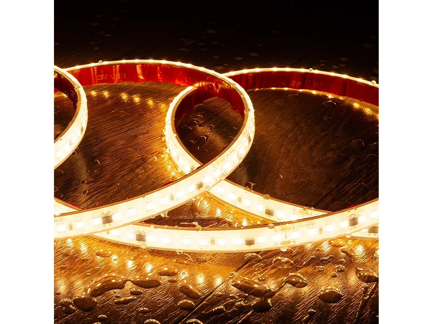 Ruban LED Dimmable 220V SMD Auto-redressement 120 LED/m 14W/m 1680lm/m SILICONE FLEX Largeur 12mm Coupe 10cm IP67 Sur mesure 2700K Blanc chaud 25 m