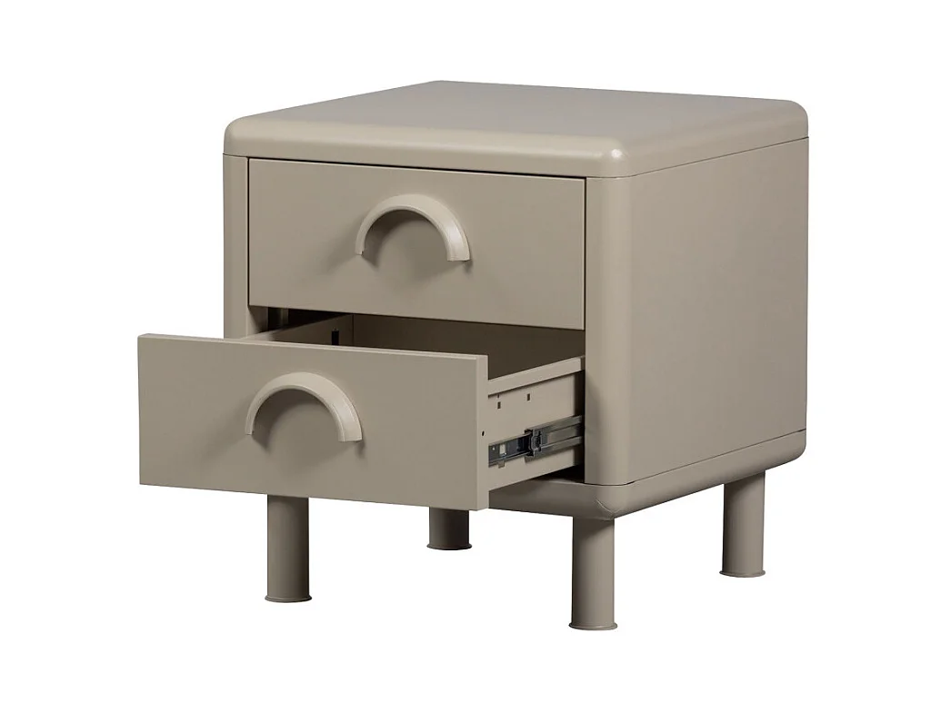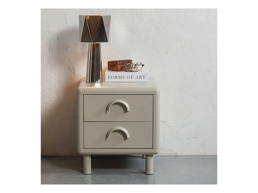 Rune - Table de chevet 2 tiroirs en métal - Beige
