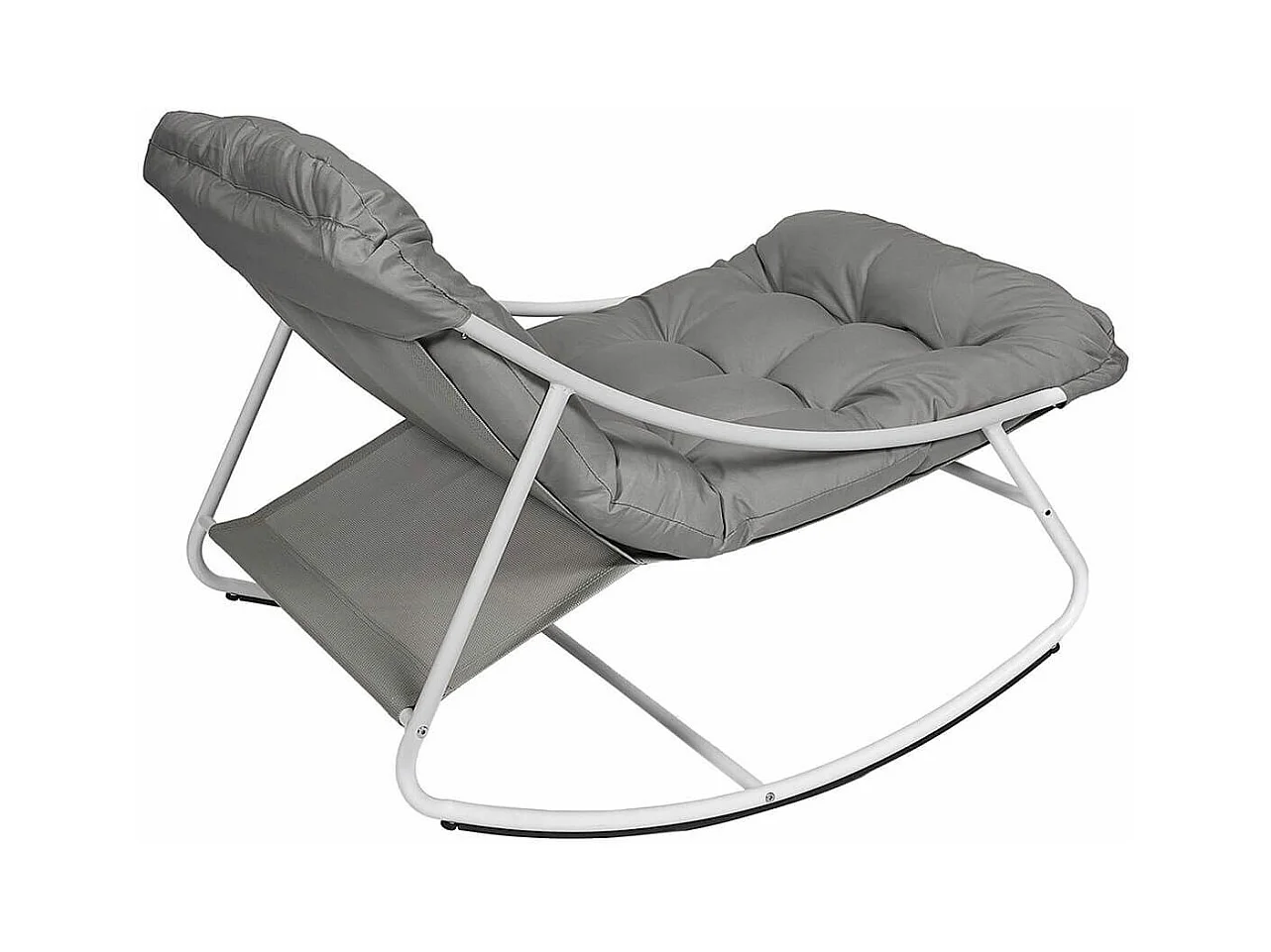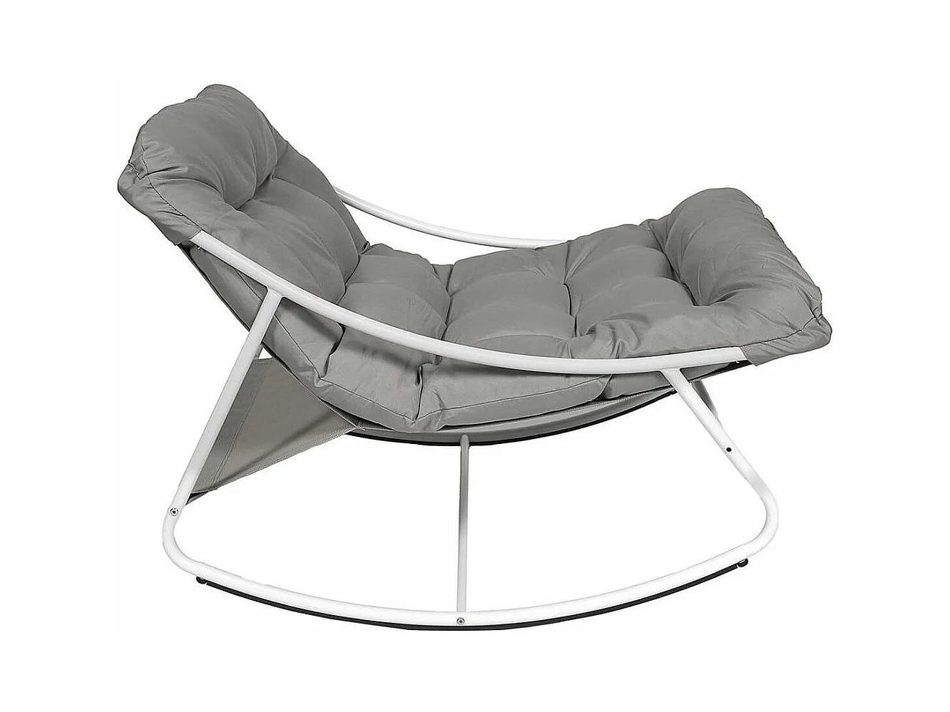 SABHA - Fauteuil à Bascule en Métal Blanc et Textilène avec Coussin d'assise Taupe