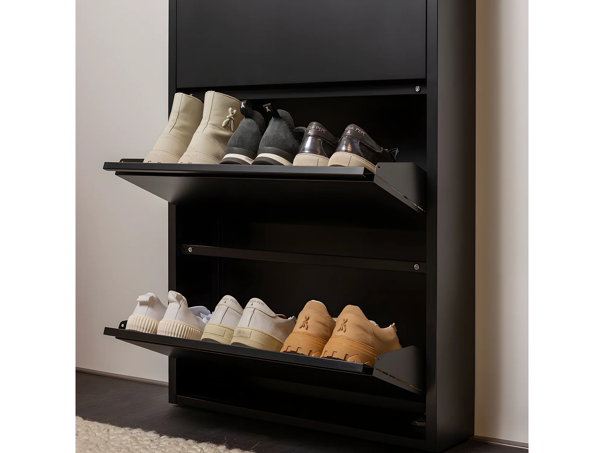 Sabine - Meuble à chaussures 3 portes en métal L66cm - Noir