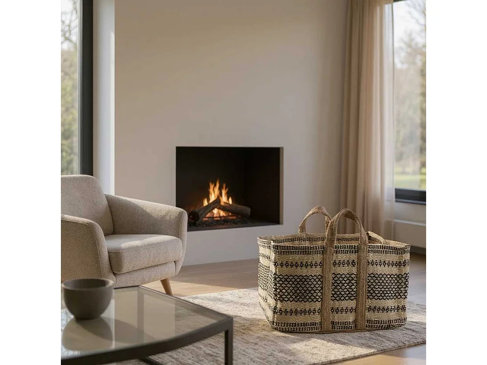 Panier à Bûches en Jonc Naturel et Métal avec 2 Anses | Aubry Gaspard