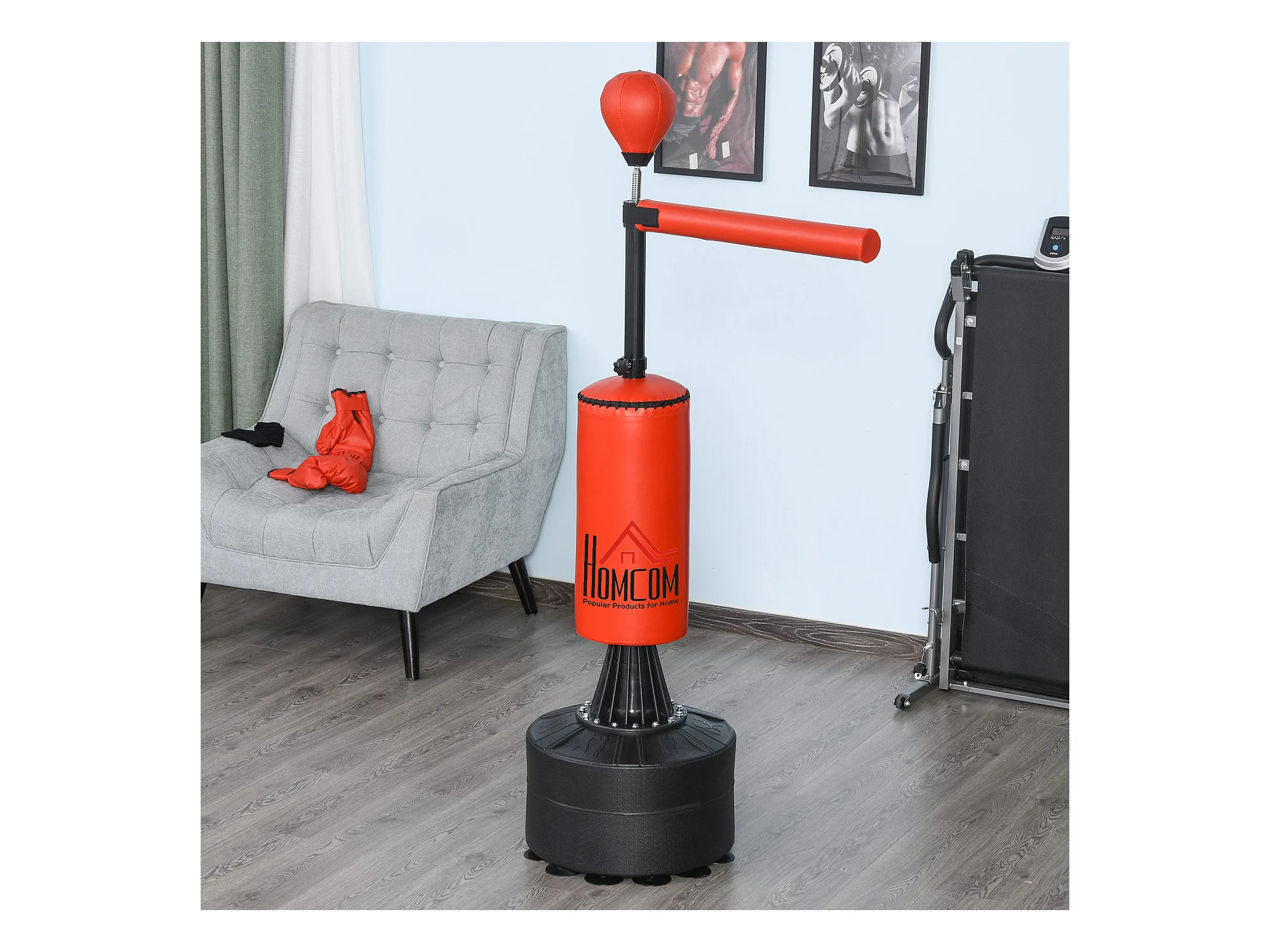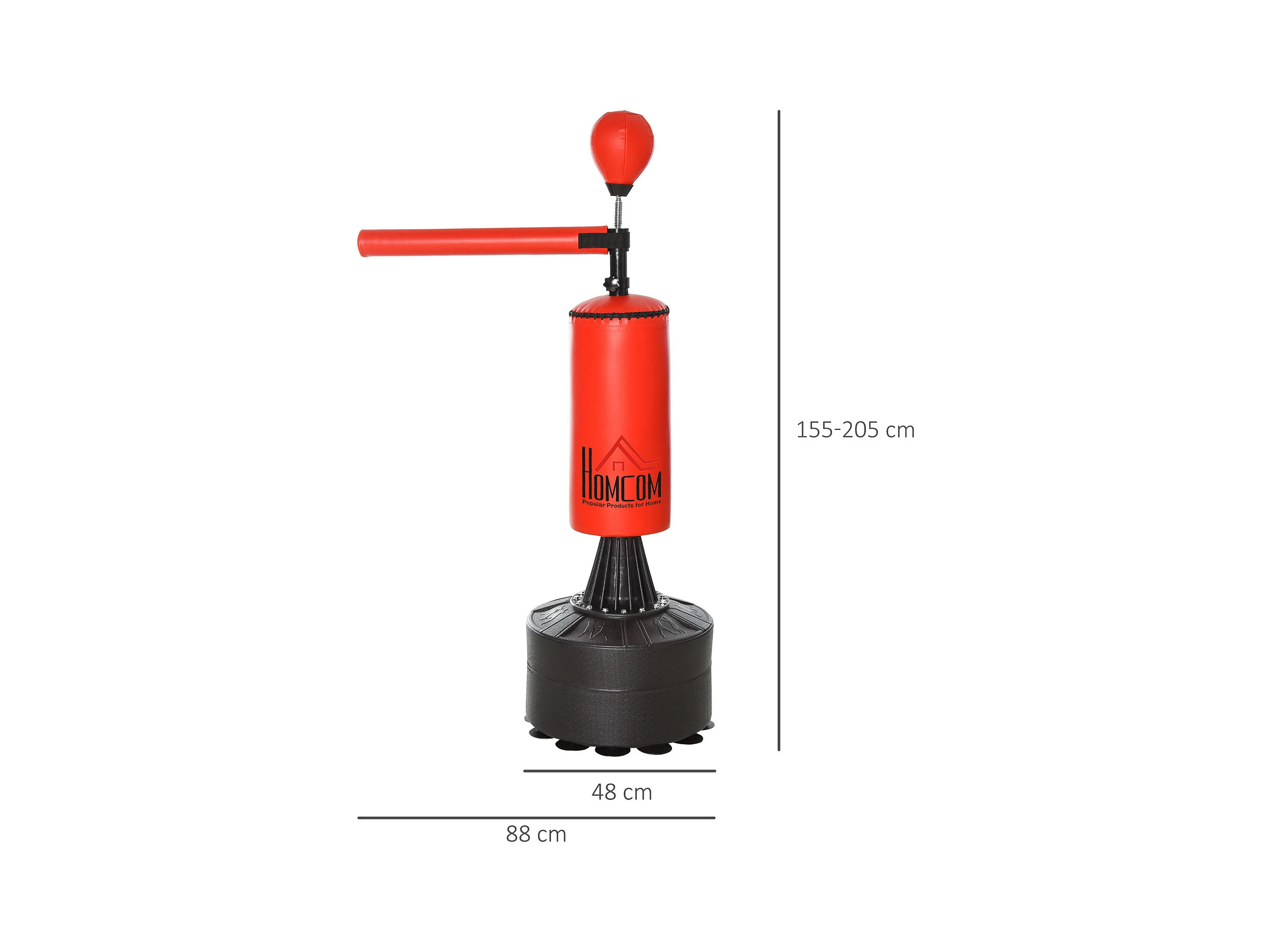 Sac de frappe boxe autoportant punching ball brunier 3 en 1 revêtement synthétique dim. 88L x 48l x 155-205H cm rouge noir
