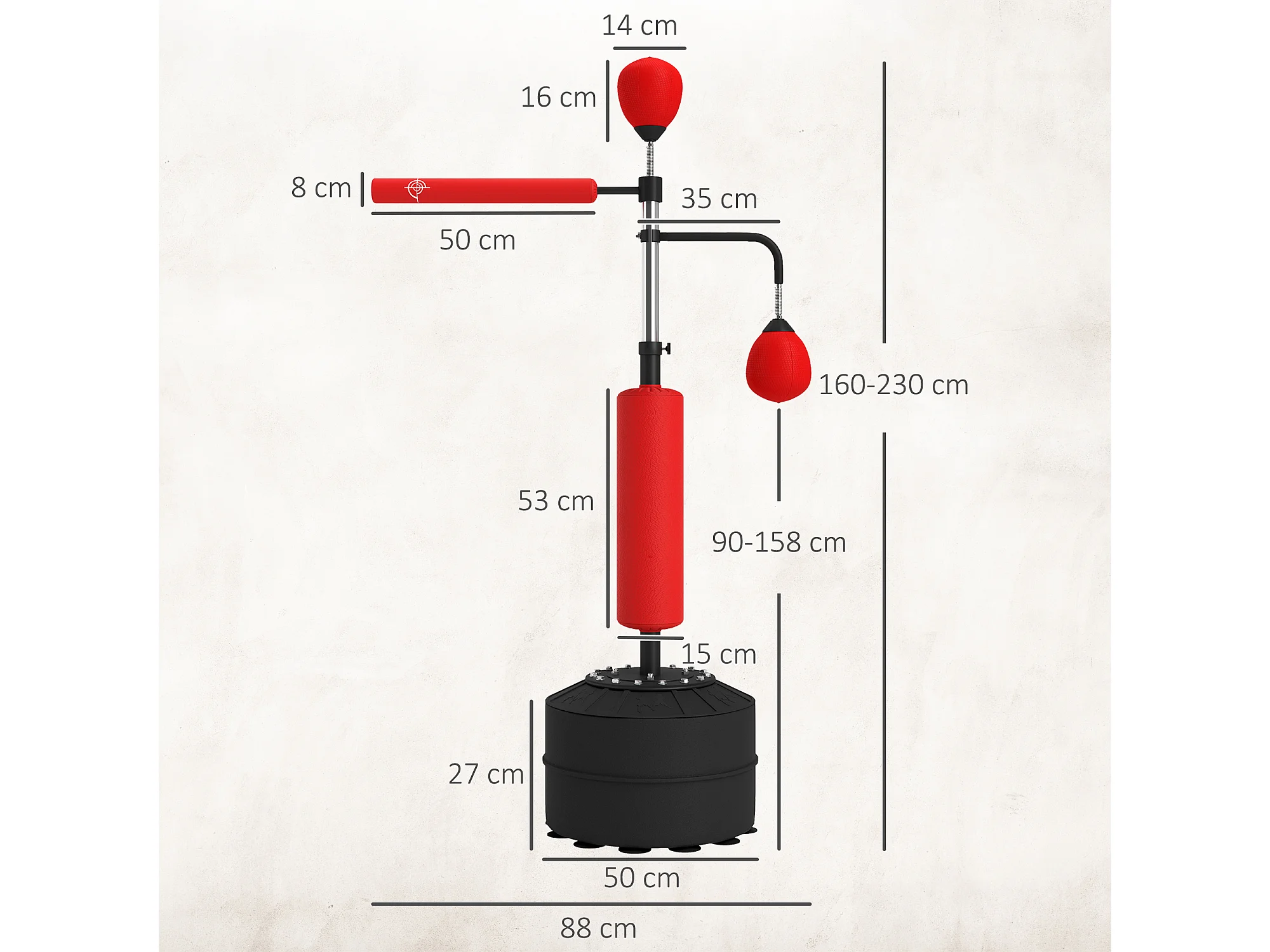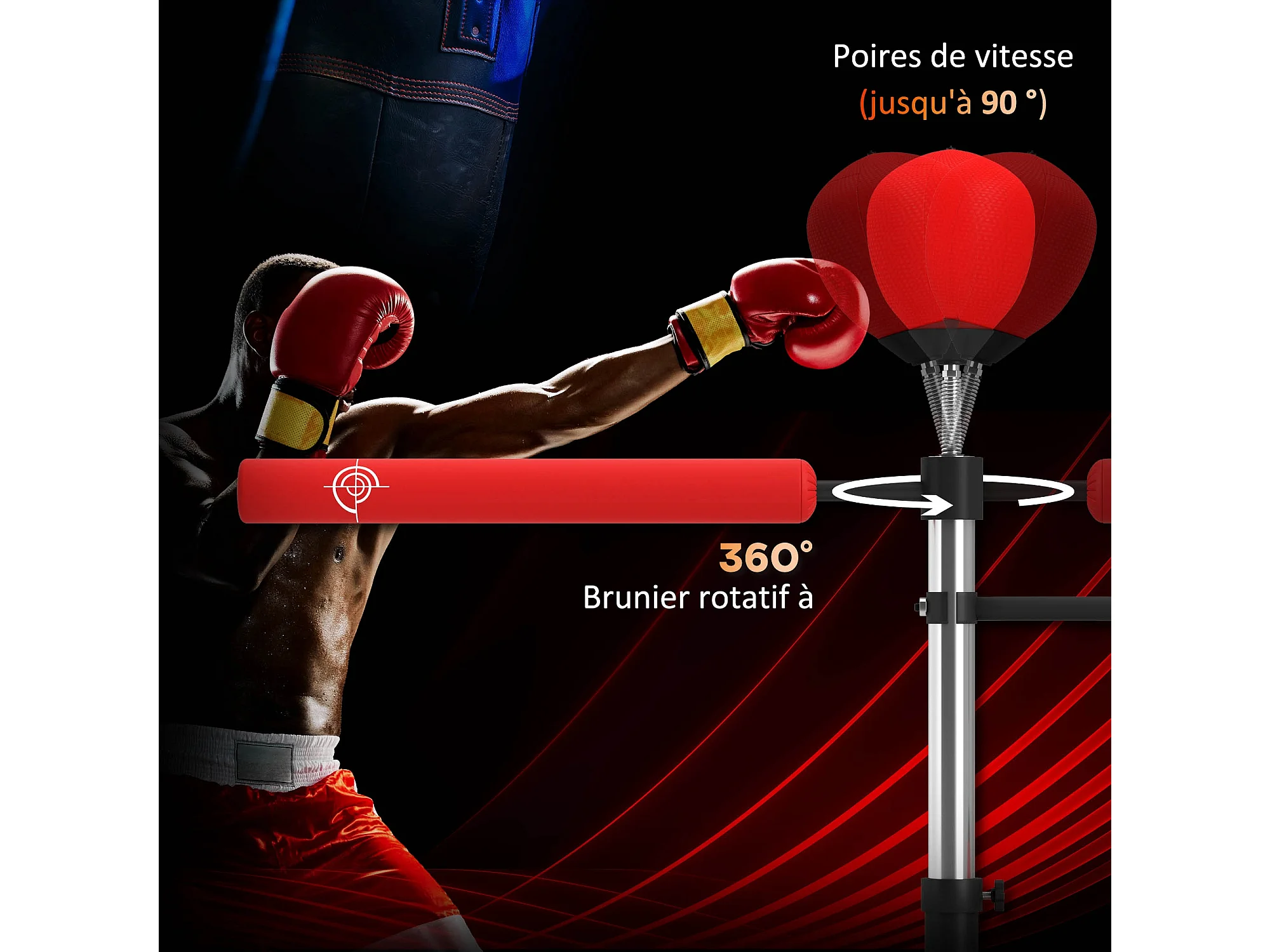 Sac de frappe boxe autoportant punching ball brunier 3 en 1 revêtement synthétique dim. 88L x 50l x 160-230H cm rouge