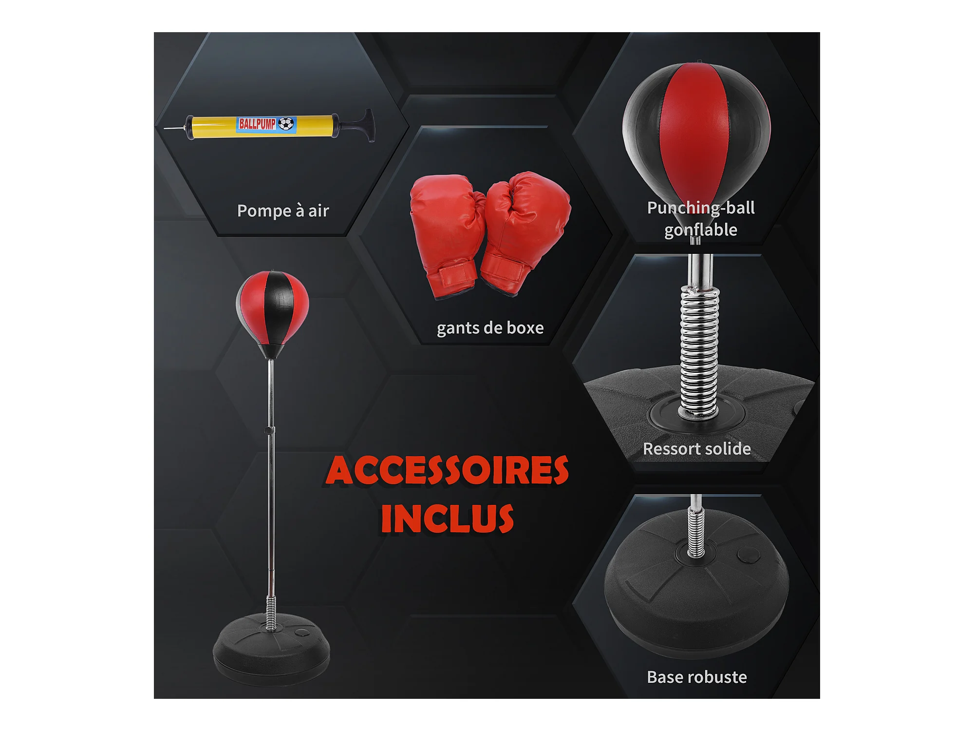 Sac de frappe punching ball avec gants et pompe hauteur reglable 125 à 145 cm
