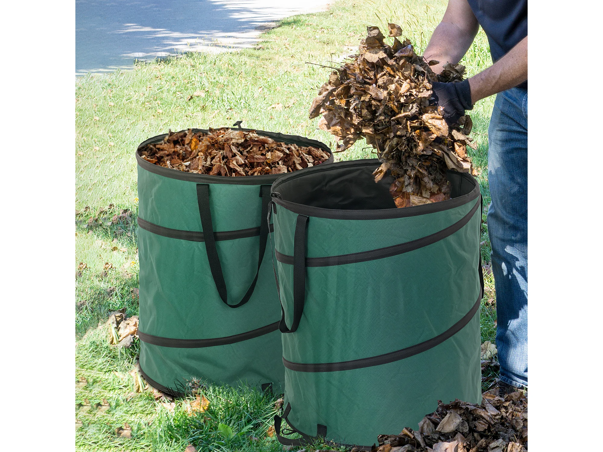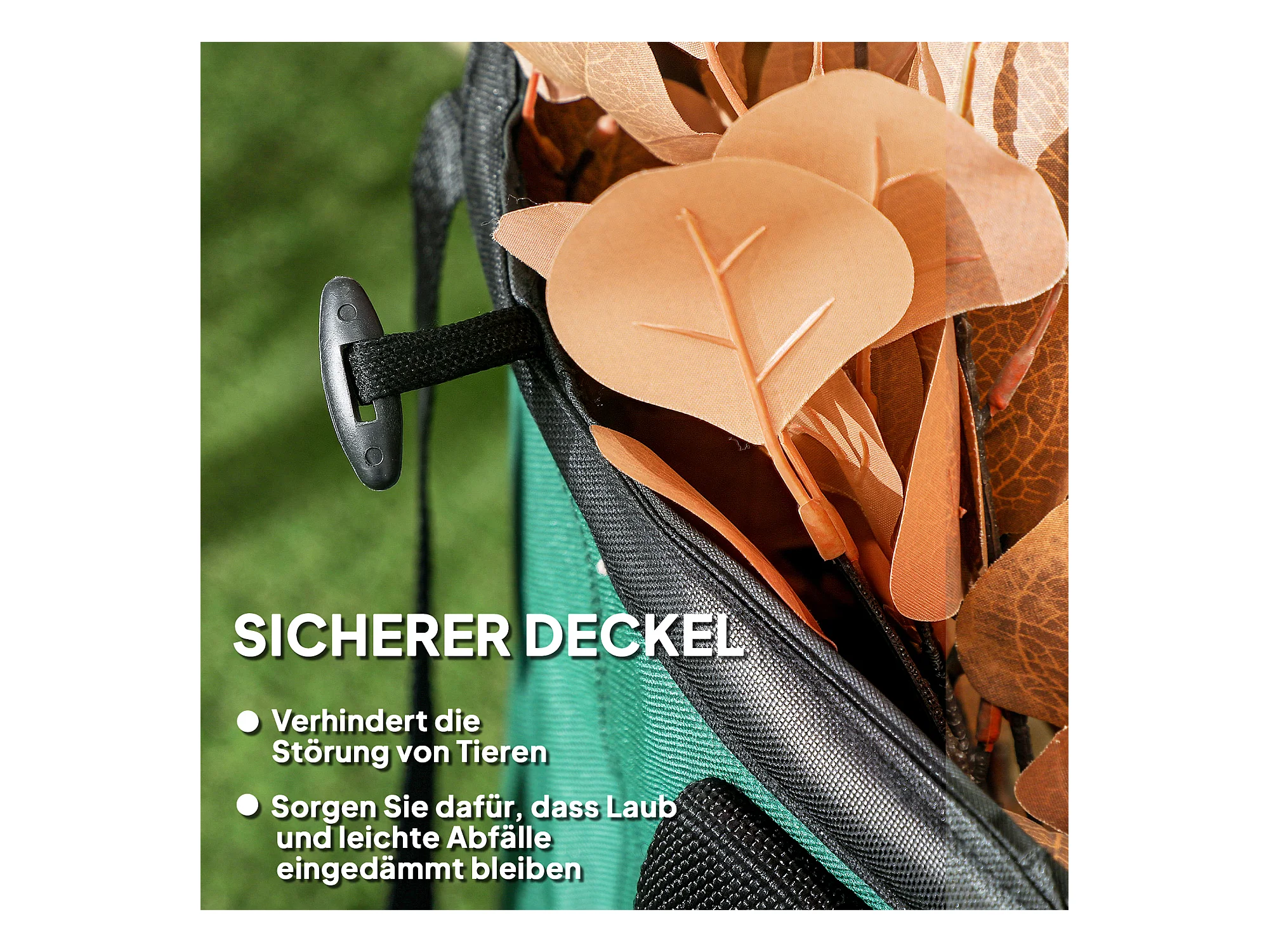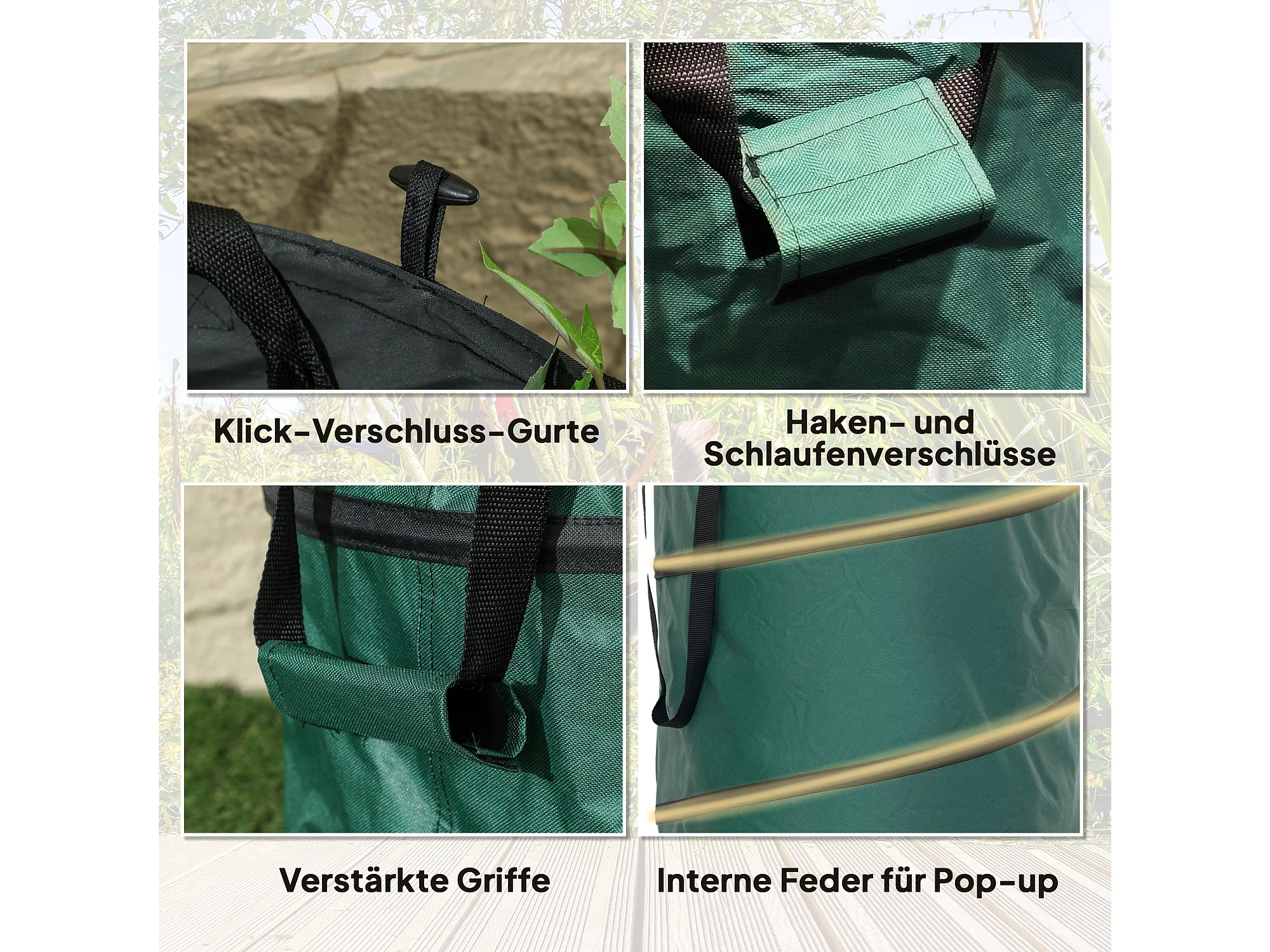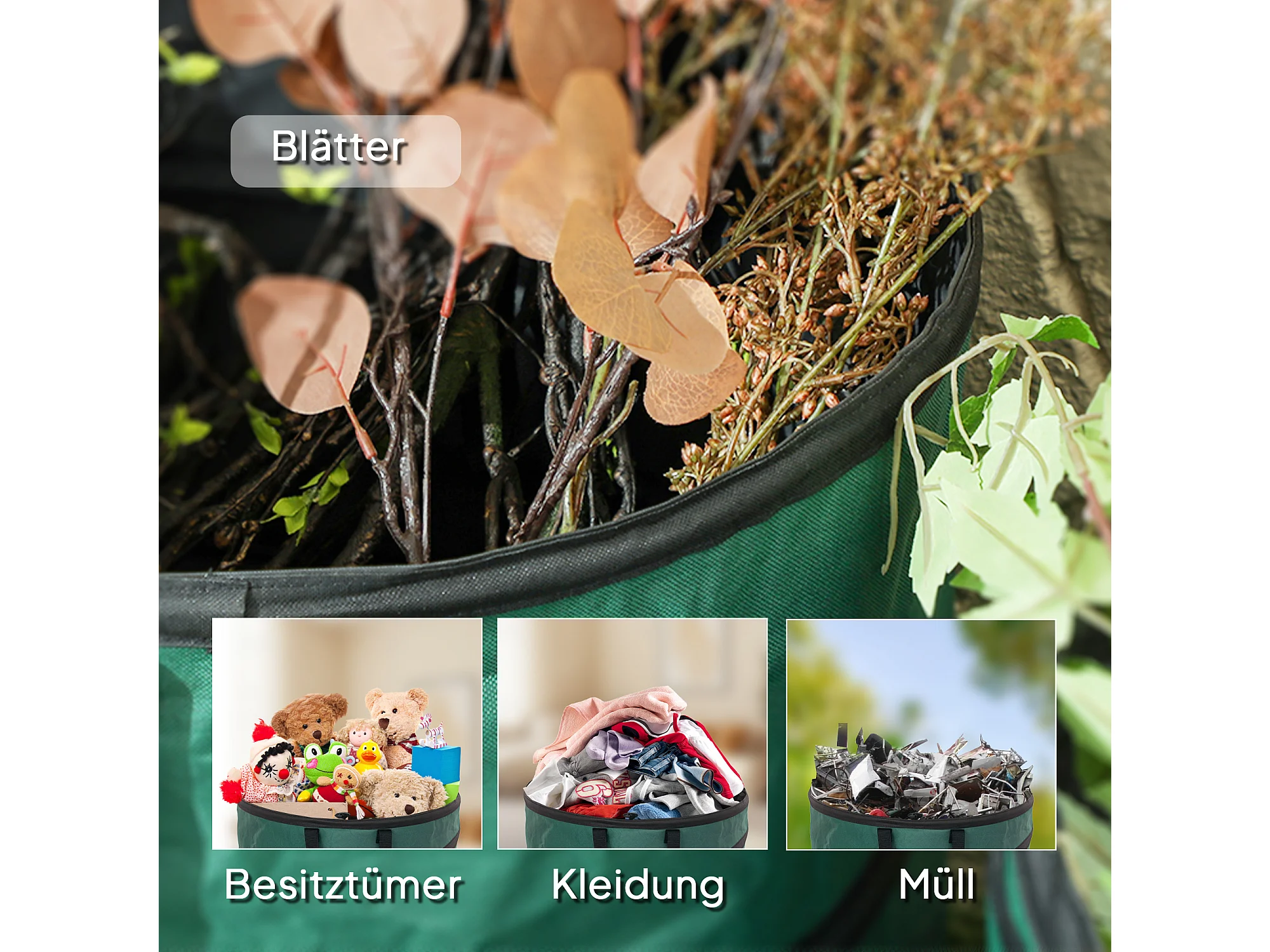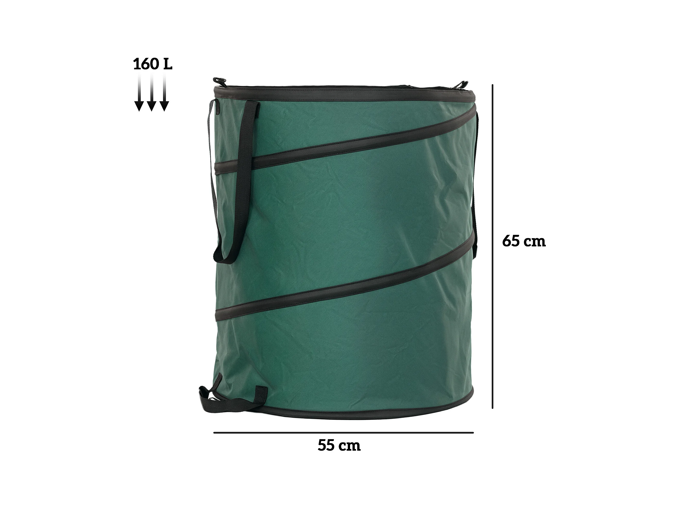 Sac de jardin étanche 2 pièces, grande capacité 160L, polyester Oxford vert, autoportant avec fermeture éclair (55x55x65cm)