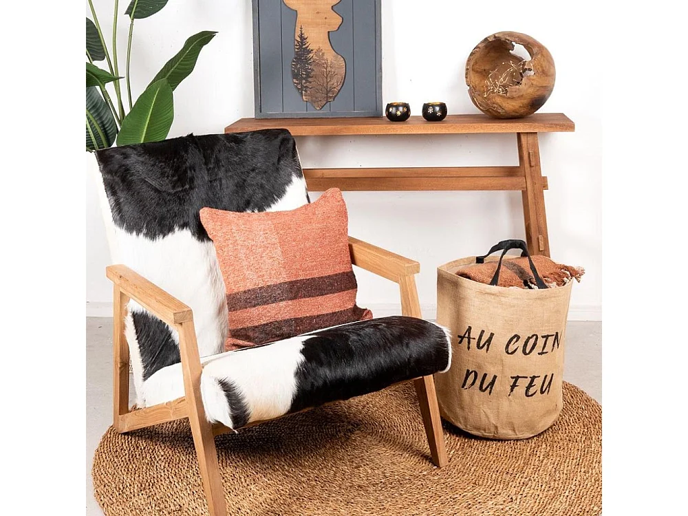Sac rond en jute naturel plastifié Au coin du feu