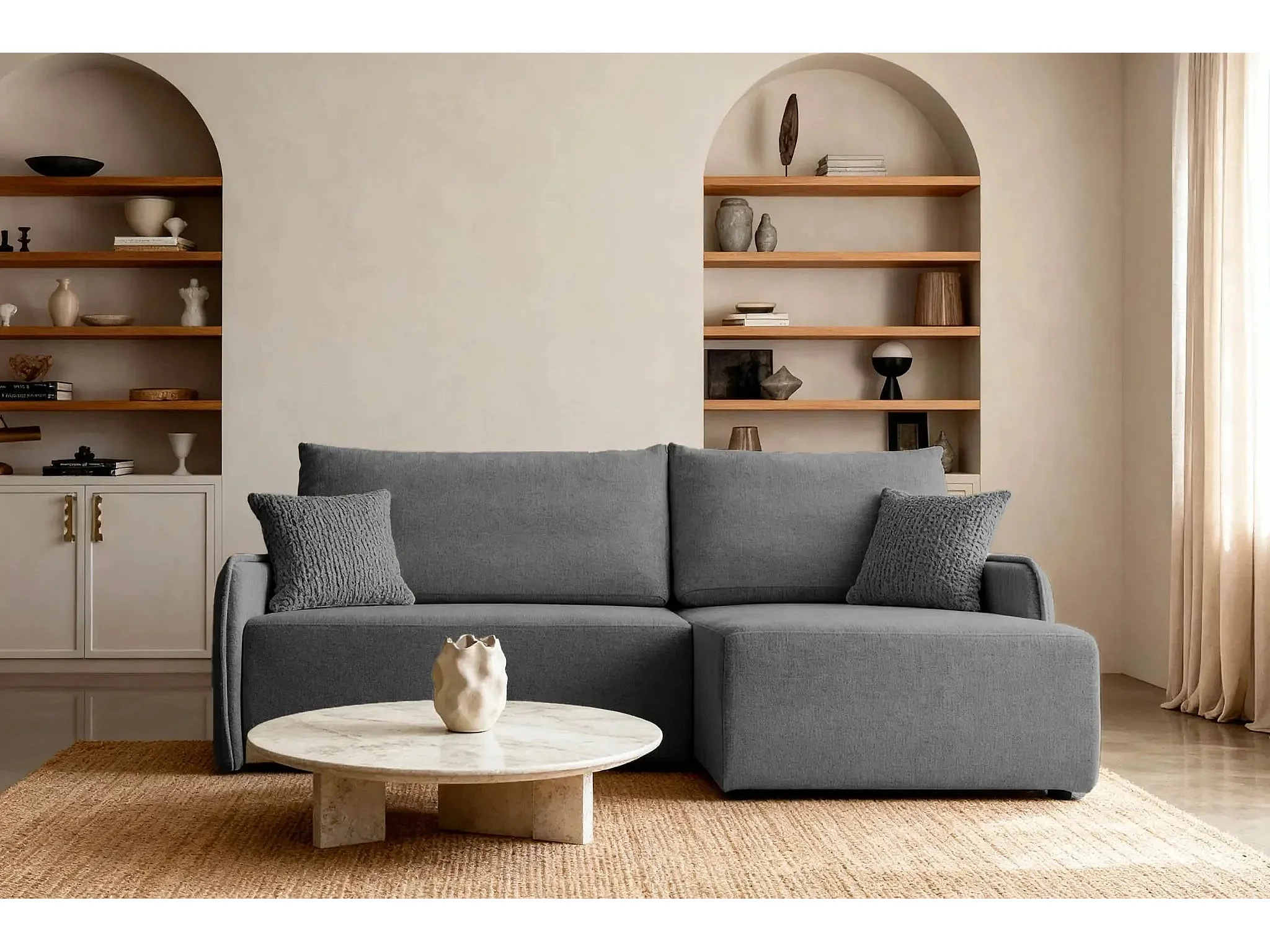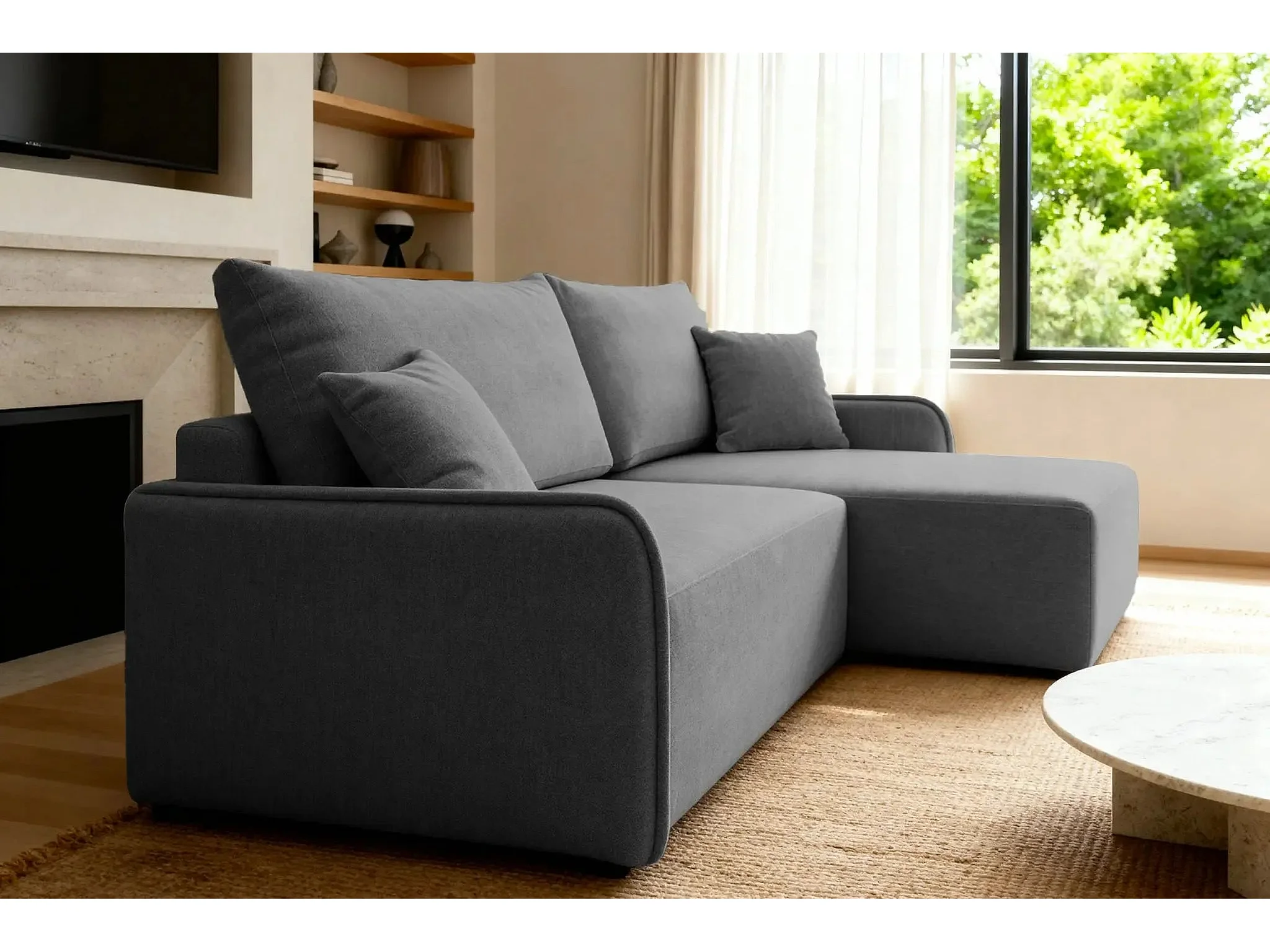 SACHA - Canapé d'angle tissu chiné 4 places - Gris Foncé - Droit