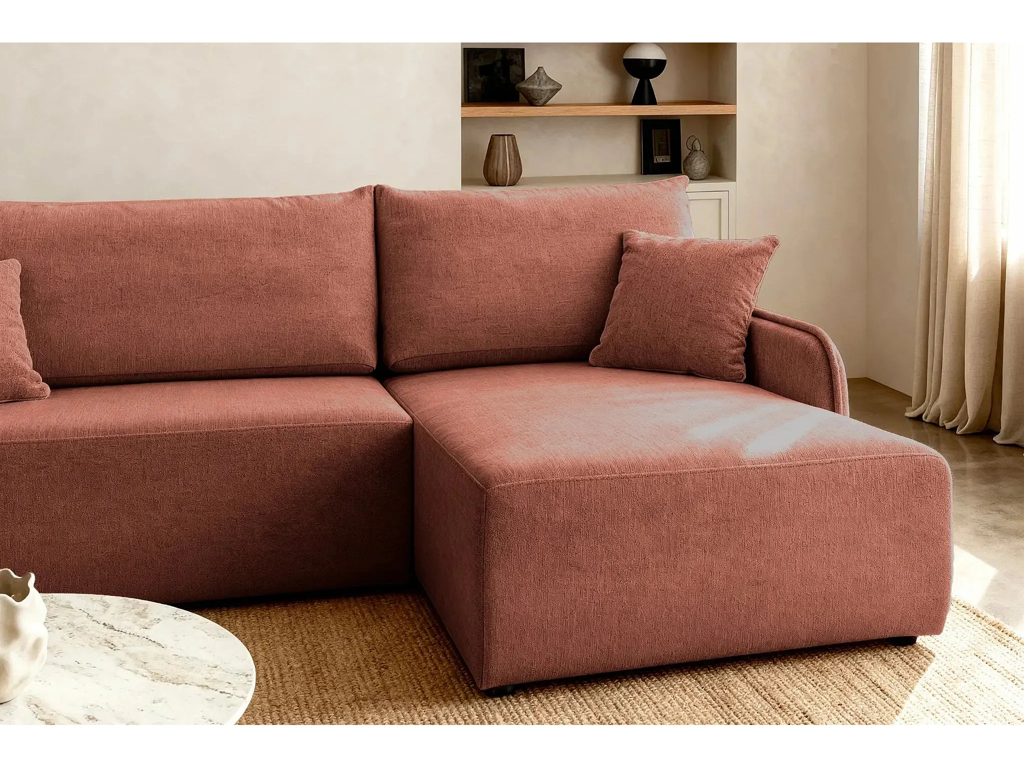 SACHA - Canapé d'angle tissu chiné 4 places - Terracotta - Droit