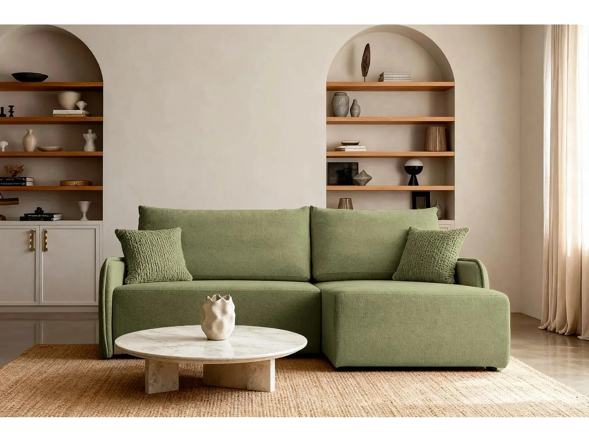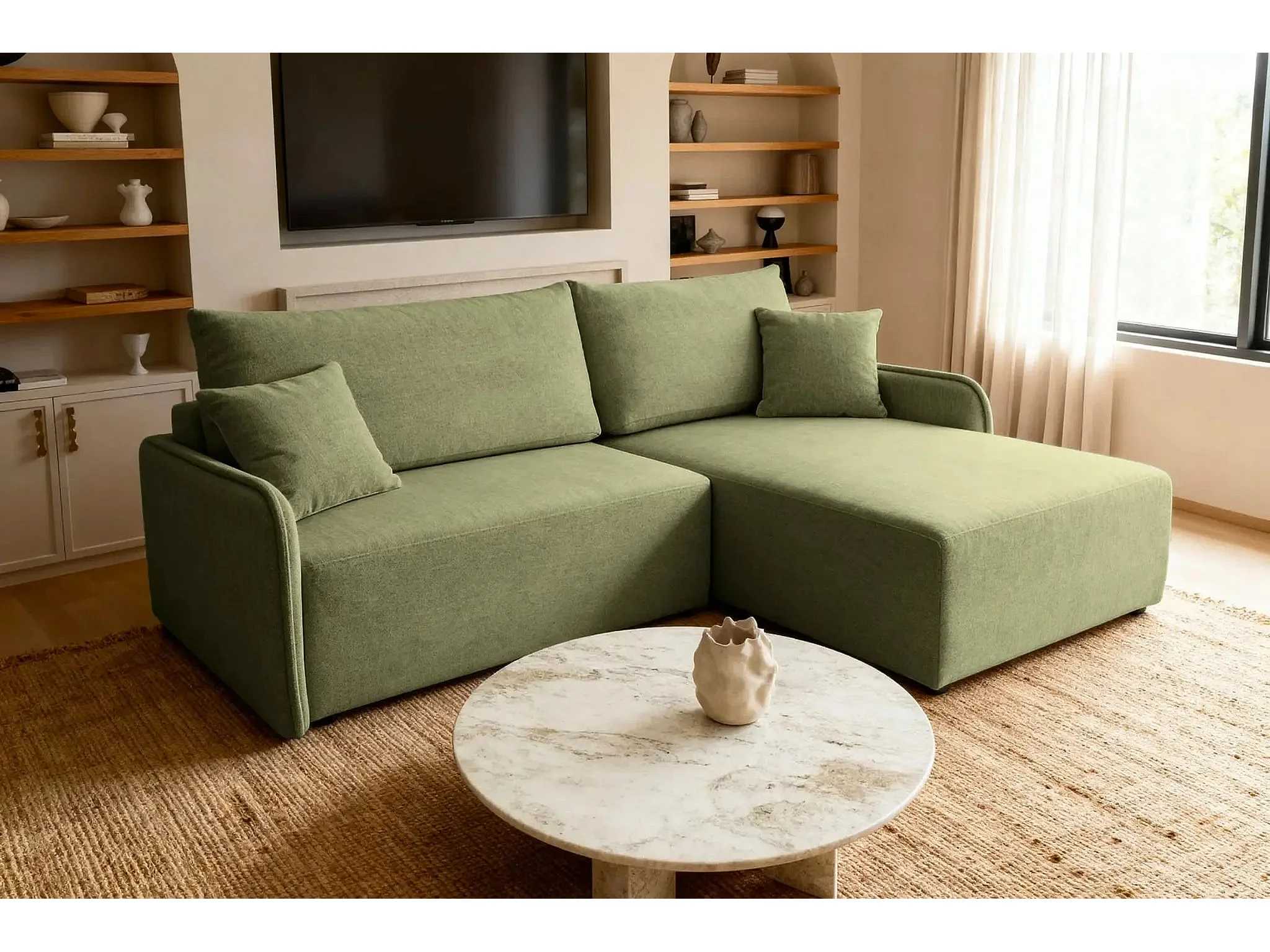 SACHA - Canapé d'angle tissu chiné 4 places - Vert - Gauche