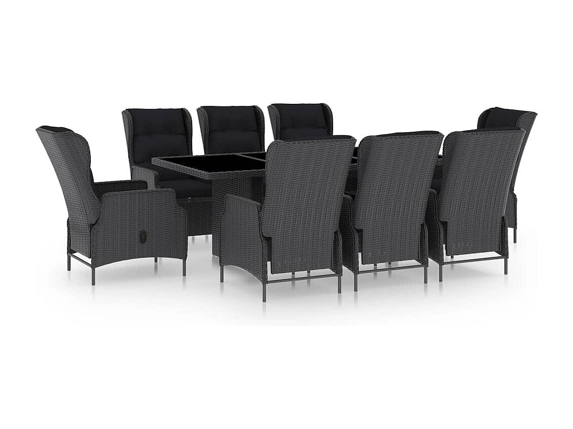 Saint-Denis Ensemble à manger d'extérieur 9pcs et coussins rotin gris foncé