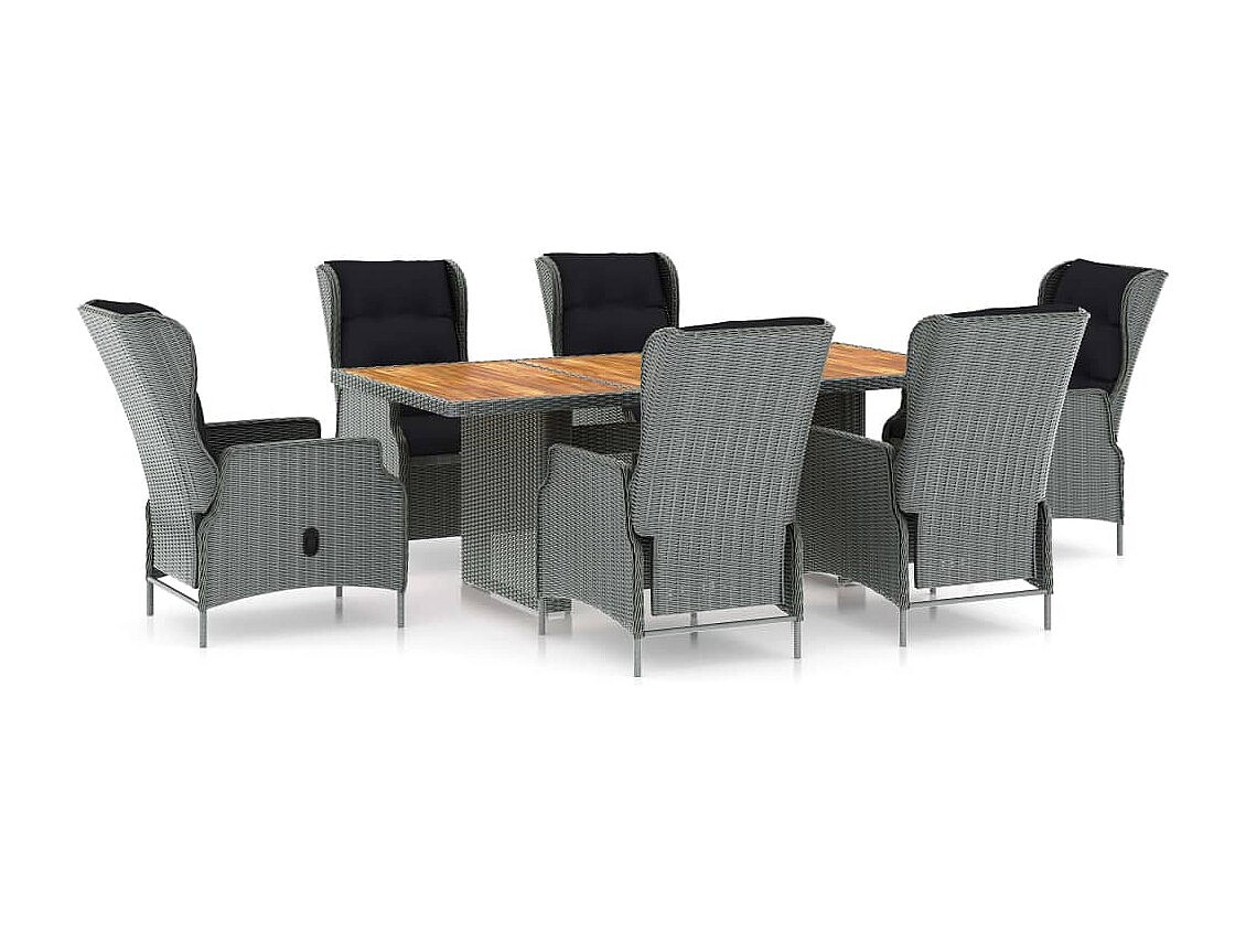 Saint-Denis Ensemble à manger d'extérieur et coussins 7 pcs résine tressée