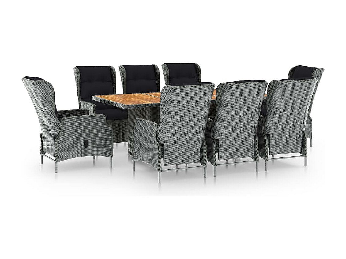 Saint-Denis Ensemble à manger d'extérieur et coussins 9 pcs résine tressée