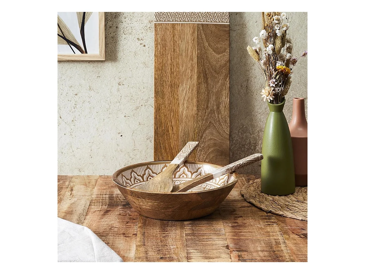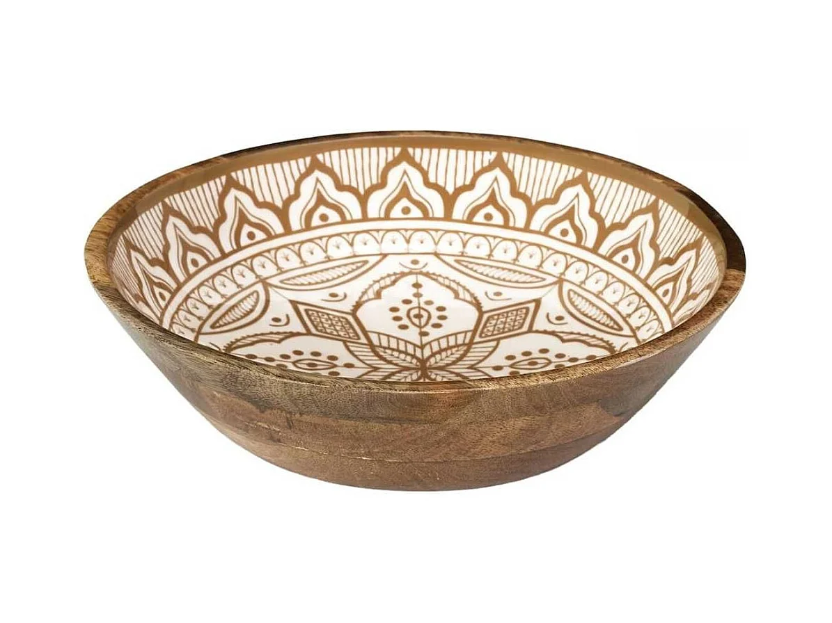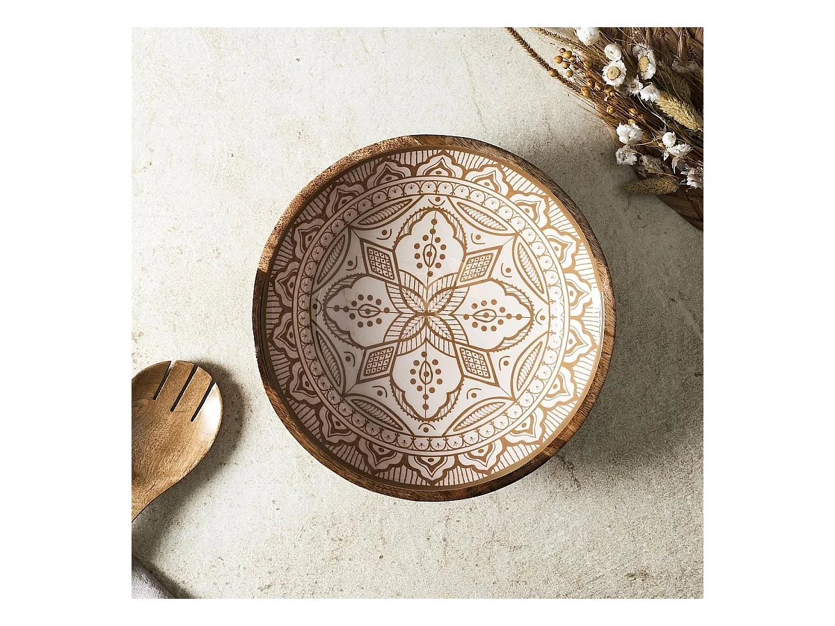 Saladier en bois de manguier avec motif mandala brun (Ø28 cm) - MANGO