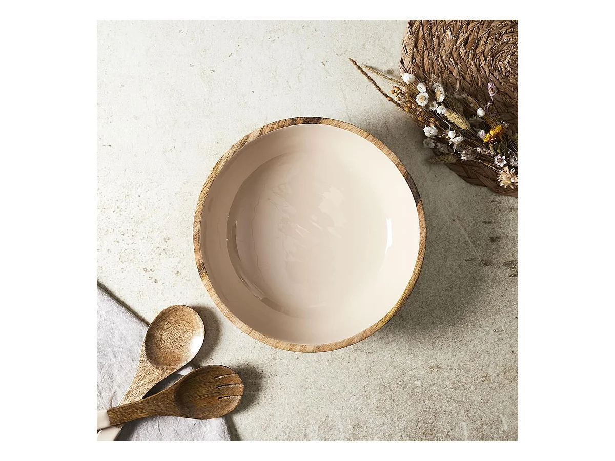 Saladier en bois de manguier uni beige (Ø28 cm) - MANGO