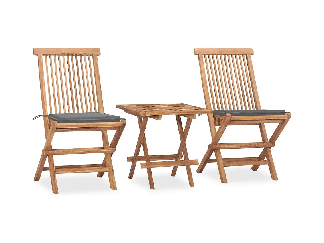 Salle à manger de jardin pliable avec coussin 3 pcs Teck BE18735