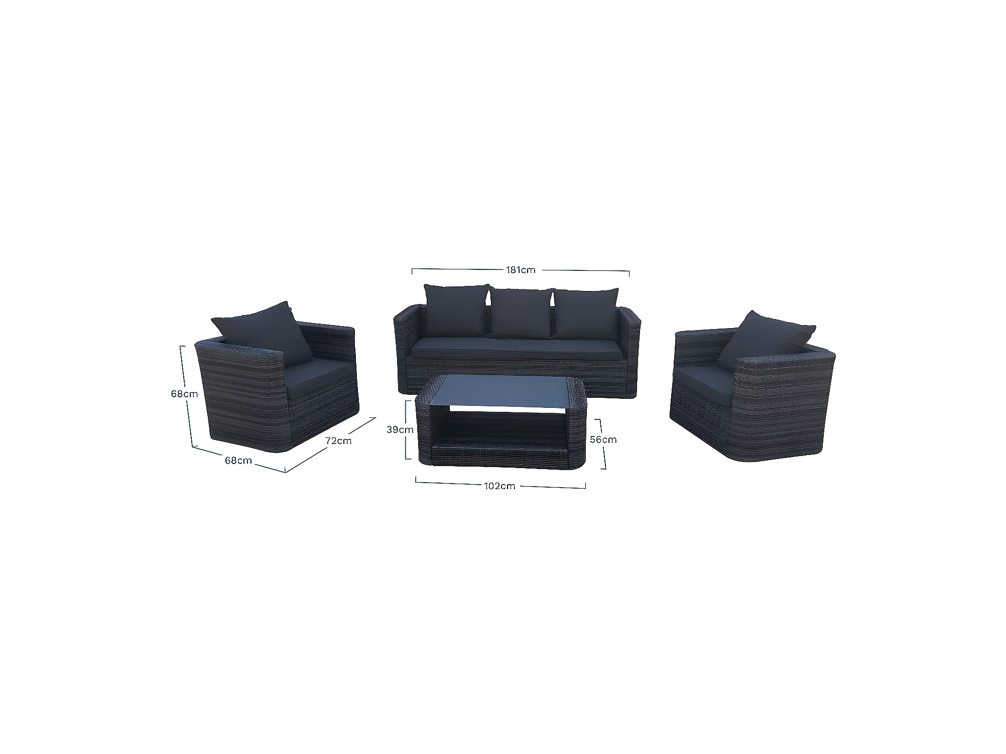 Salon 4 Personnes Dalia Résine Anthracite