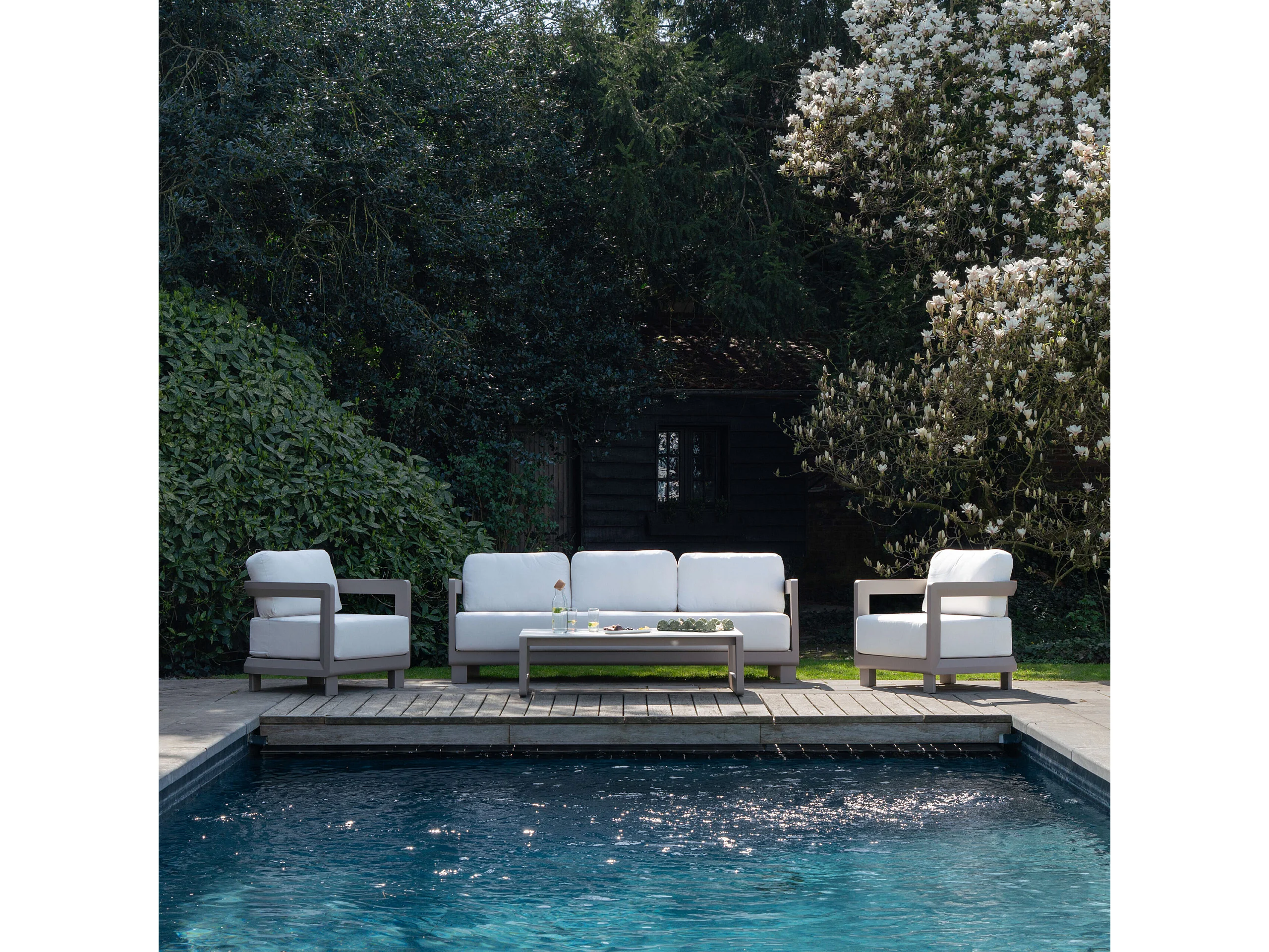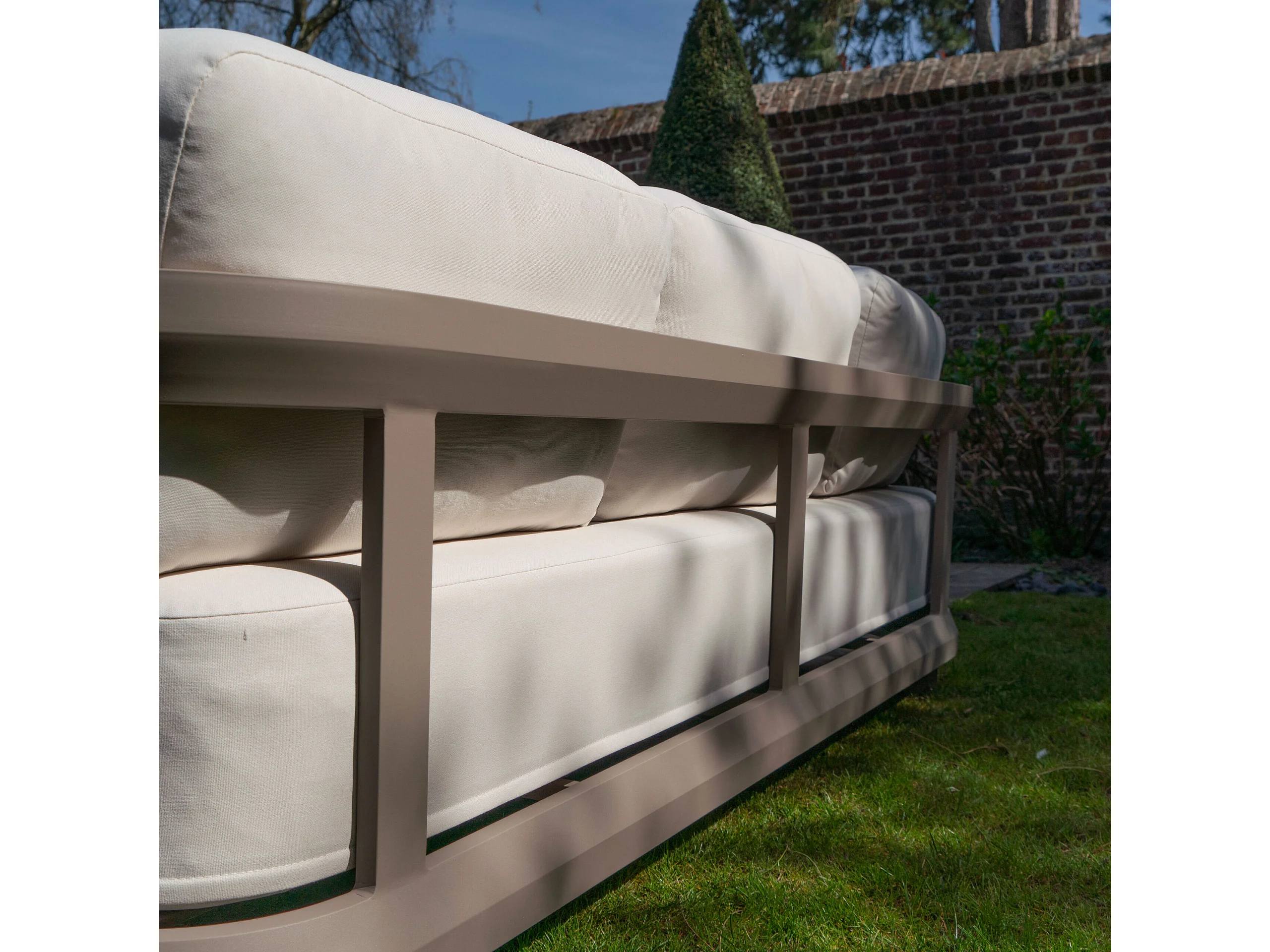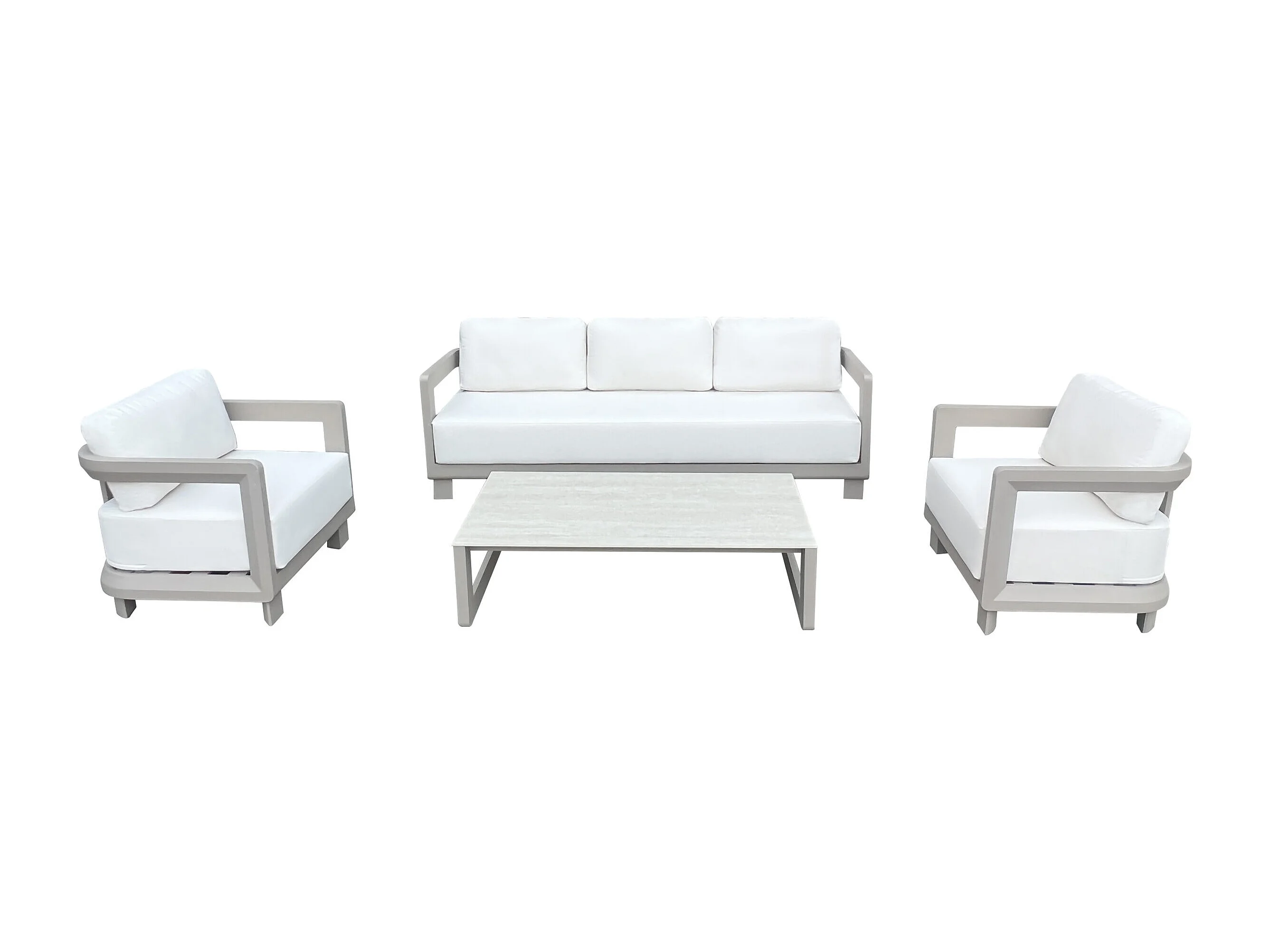 Salon bas 5p en aluminium Taupe et plateau en pierre Ivoire CALAROSSA