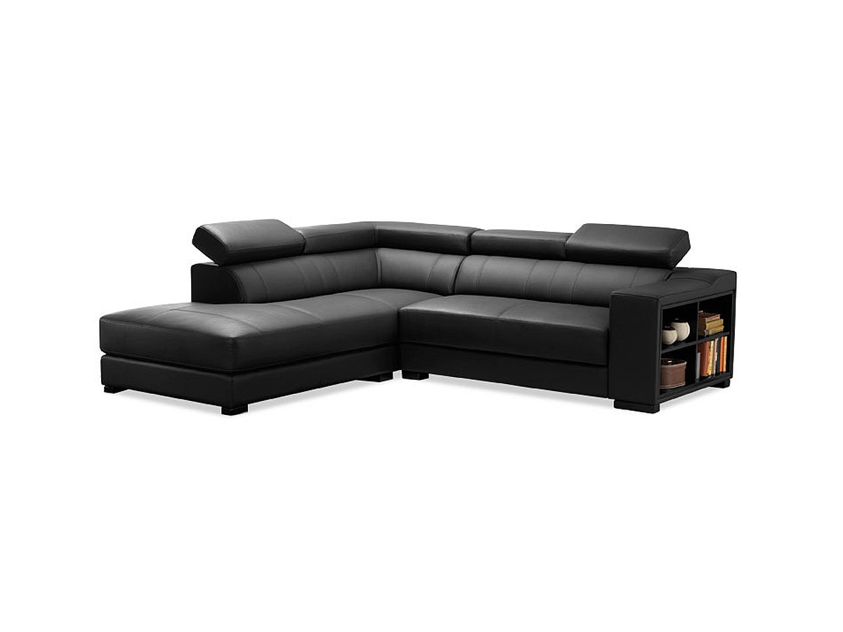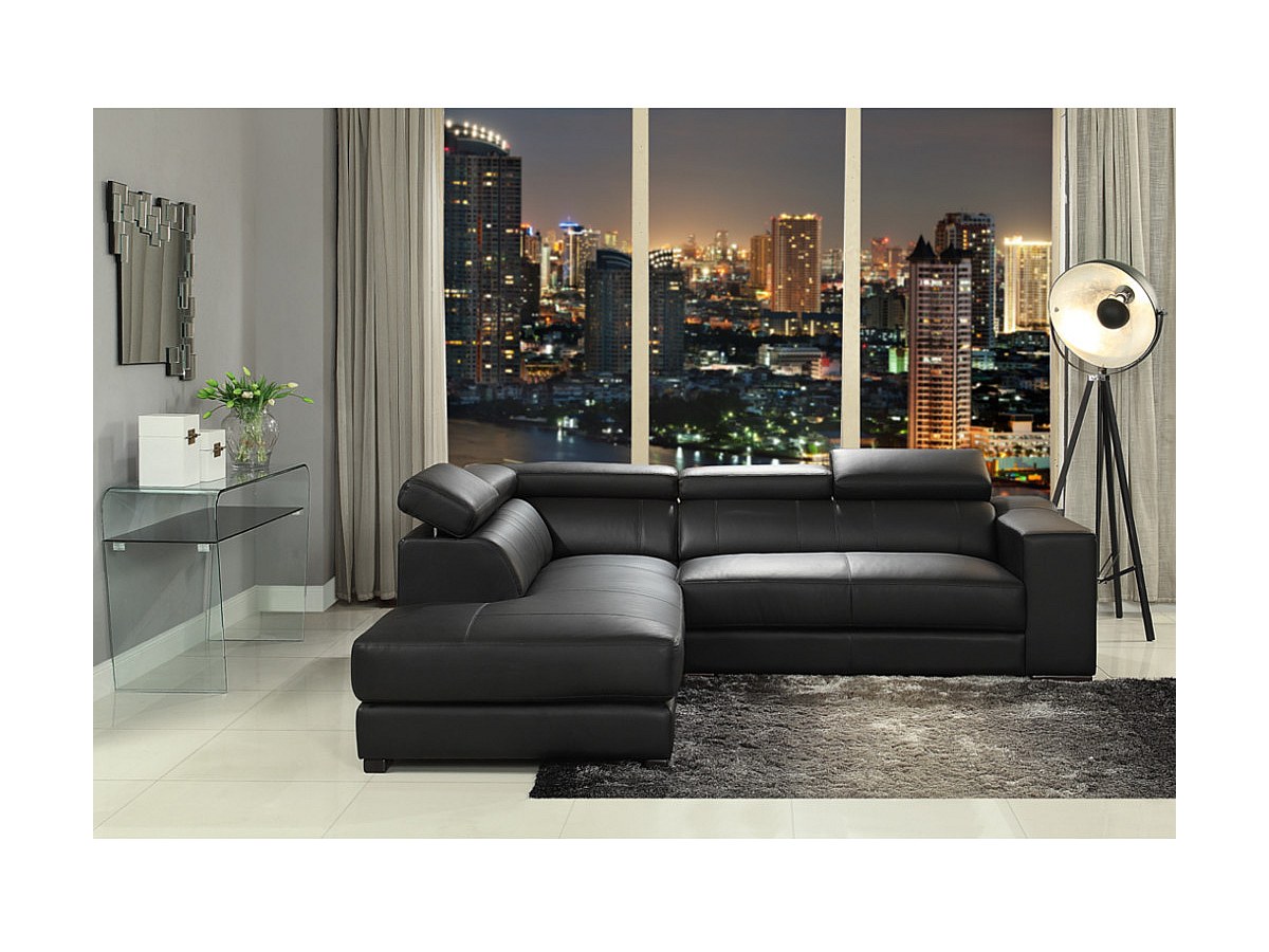 Canapé d'angle cuir LEEDS - Noir - Angle gauche