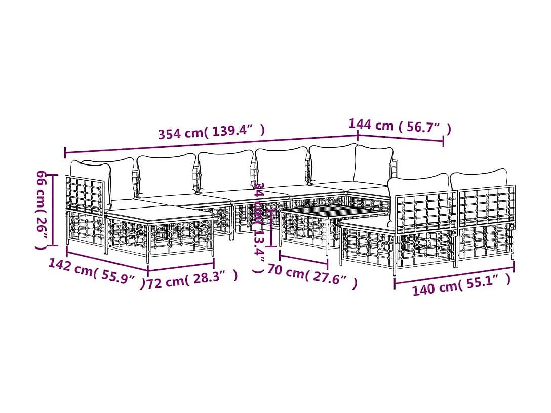Salon de jardin 10 pcs avec coussins anthracite résine tressée