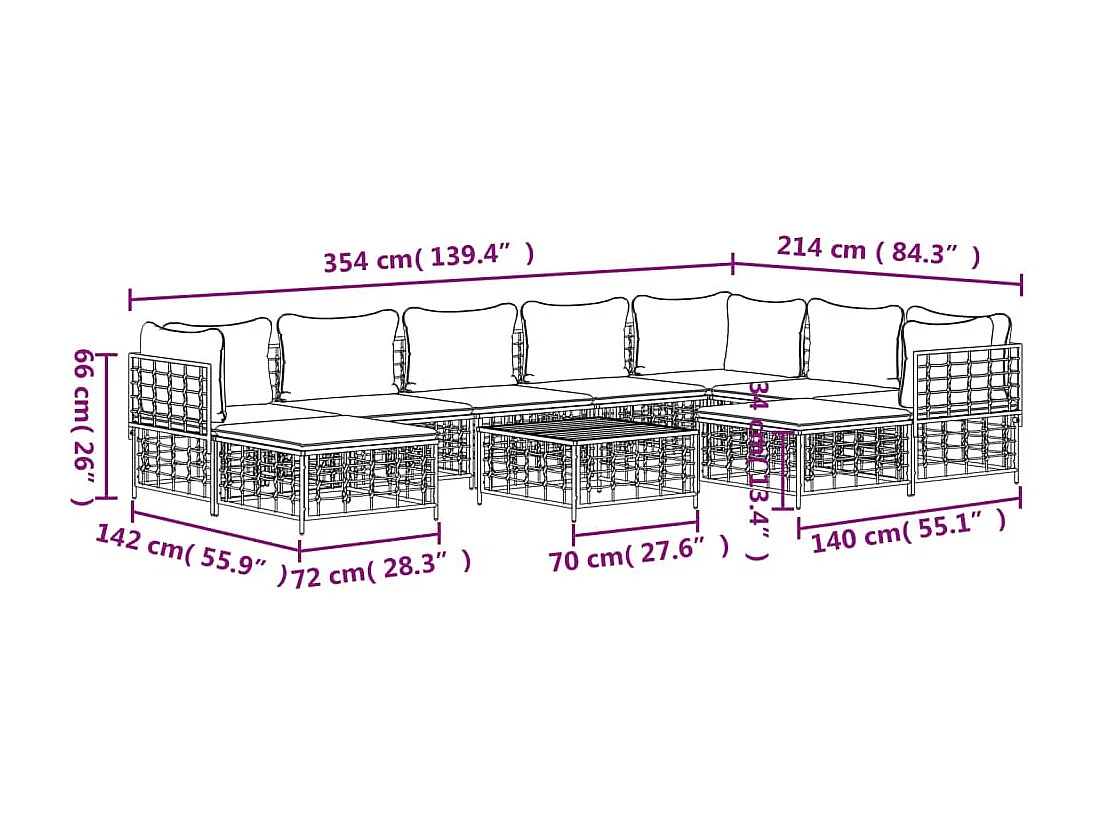 Salon de jardin 10 pcs avec coussins anthracite résine tressée