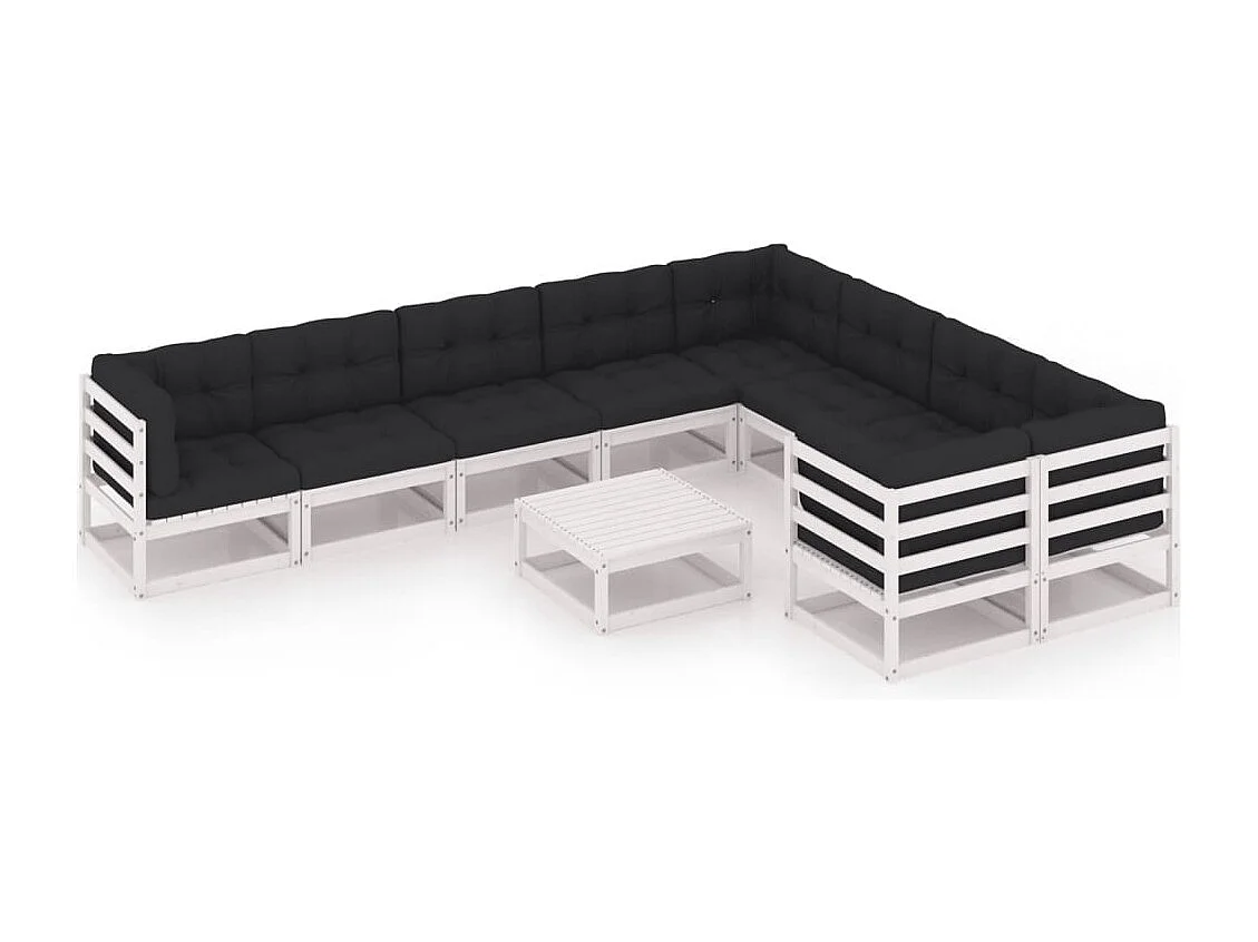 Salon de jardin 10 pcs avec coussins Blanc Bois de pin massif