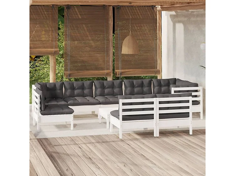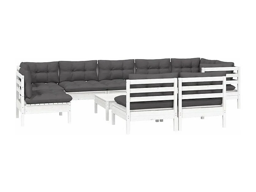 Salon de jardin 10 pcs avec coussins blanc bois de pin massif