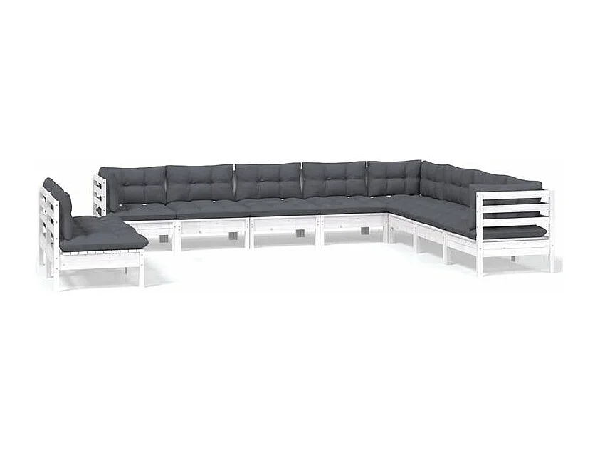 Salon de jardin 10 pcs avec coussins blanc bois de pin solide