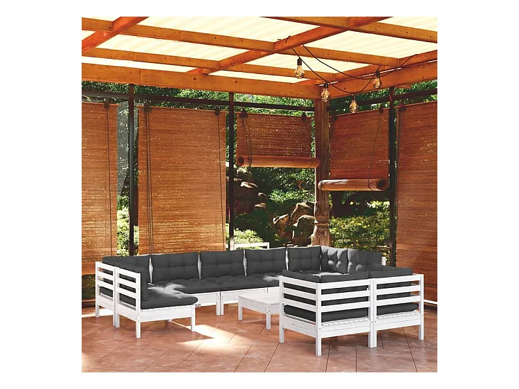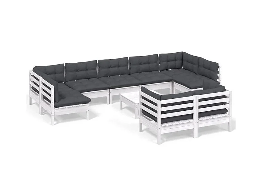Salon de jardin 10 pcs avec coussins blanc bois de pin solide