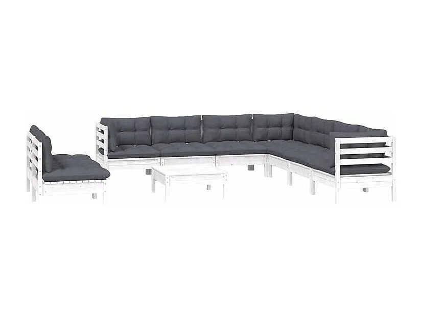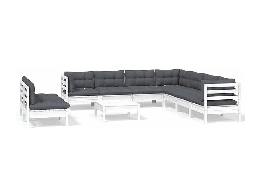 Salon de jardin 10 pcs avec coussins blanc bois de pin solide