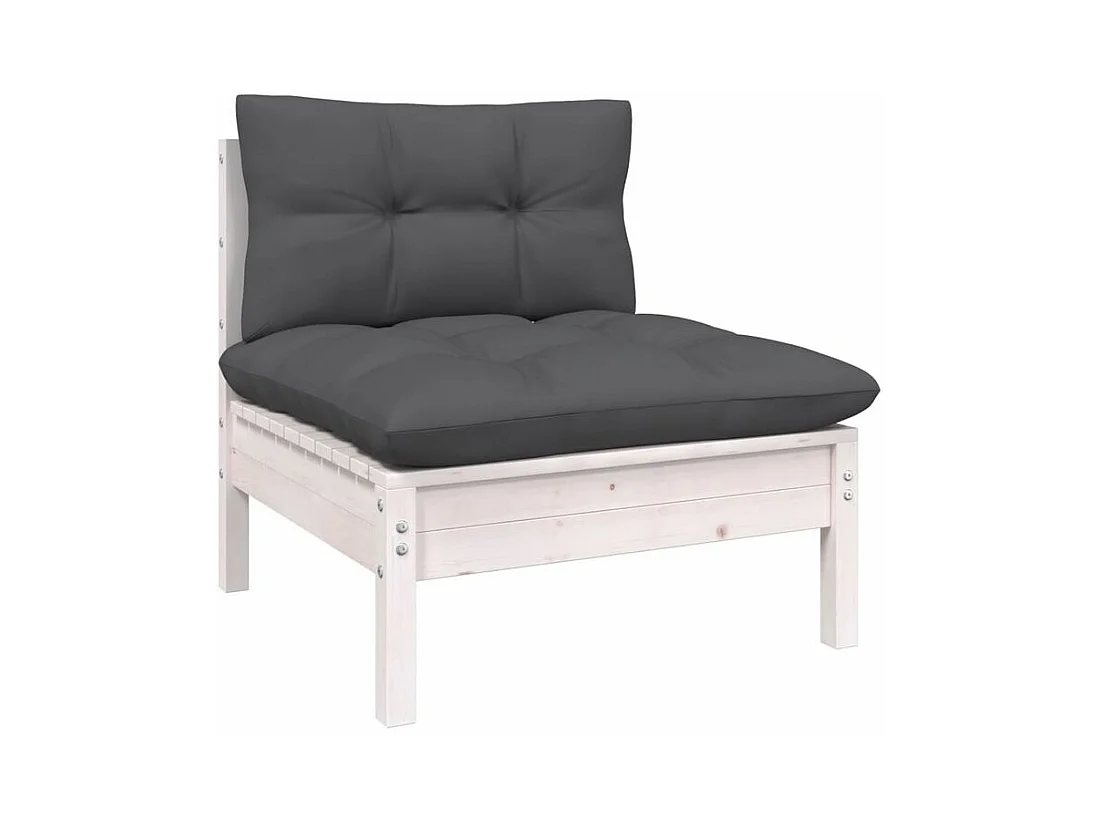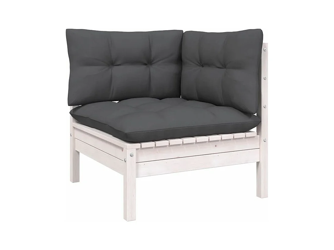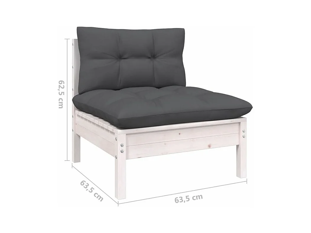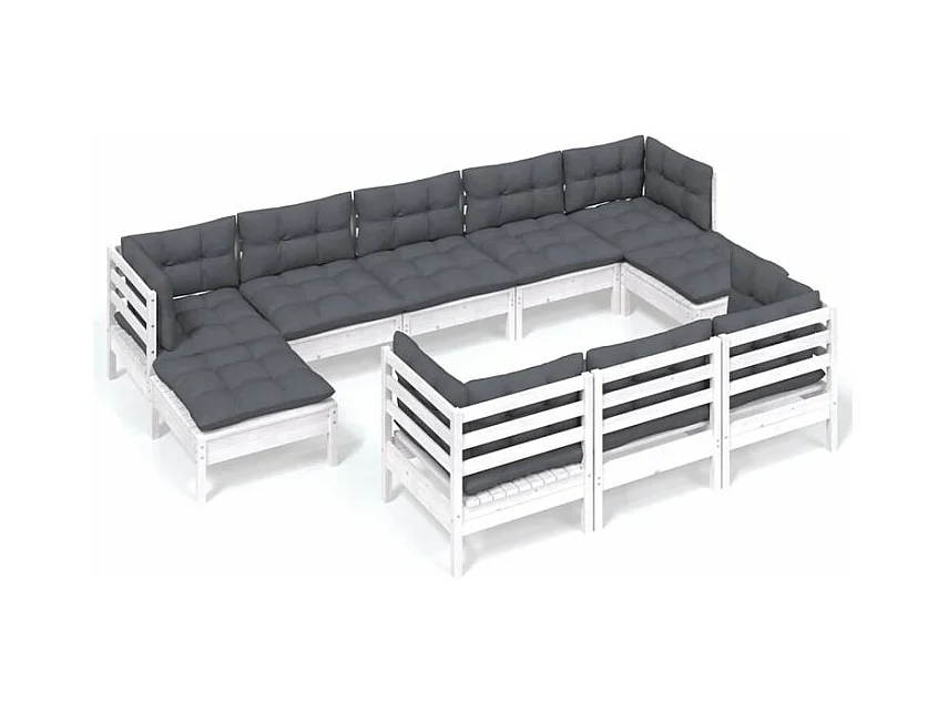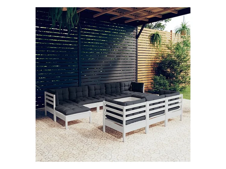 Salon de jardin 10 pcs avec coussins blanc bois de pin solide