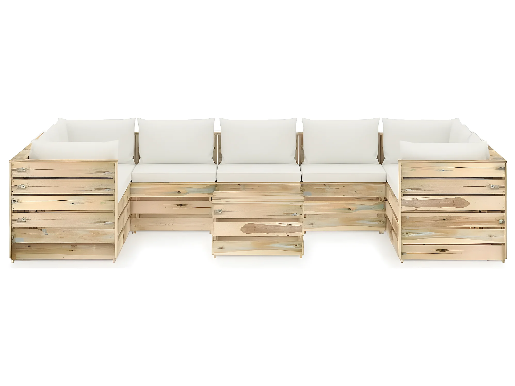 Salon de jardin 10 pcs avec coussins Bois imprégné de vert
