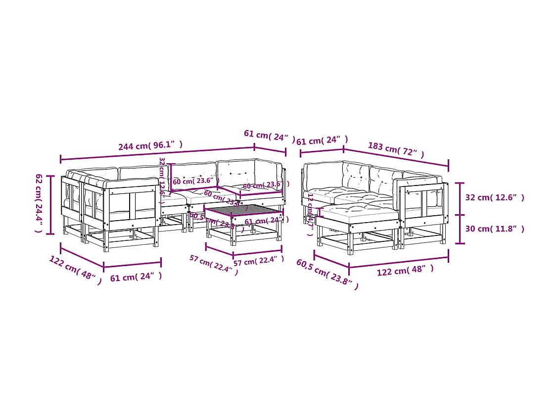 Salon de jardin 10 pcs avec coussins bois massif douglas