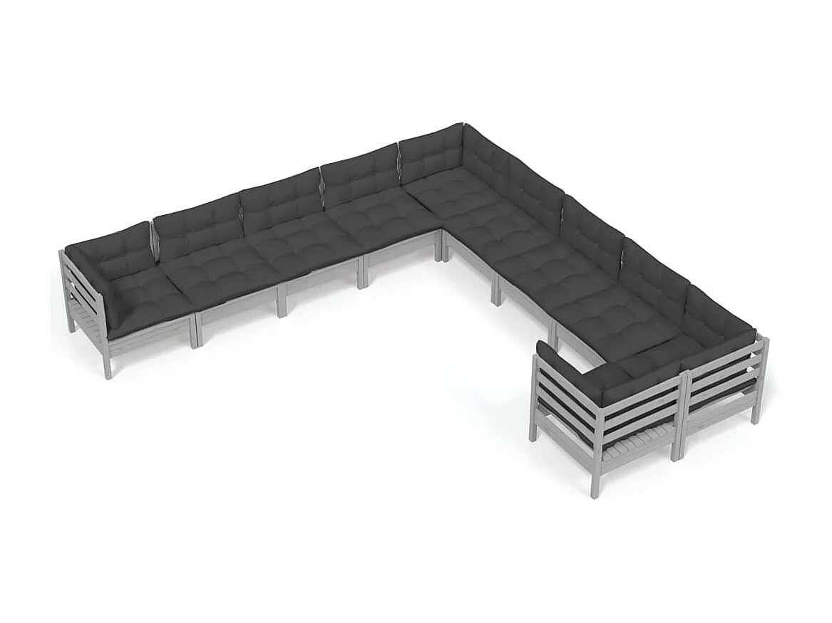 Salon de jardin 10 pcs avec coussins Gris Bois de pin 2