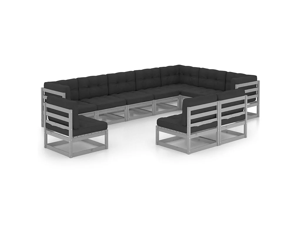 Salon de jardin 10 pcs avec coussins Gris Bois de pin massif 23