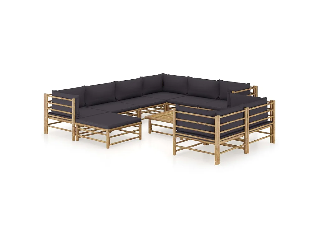 Salon de jardin 10 pcs avec coussins gris foncé Bambou