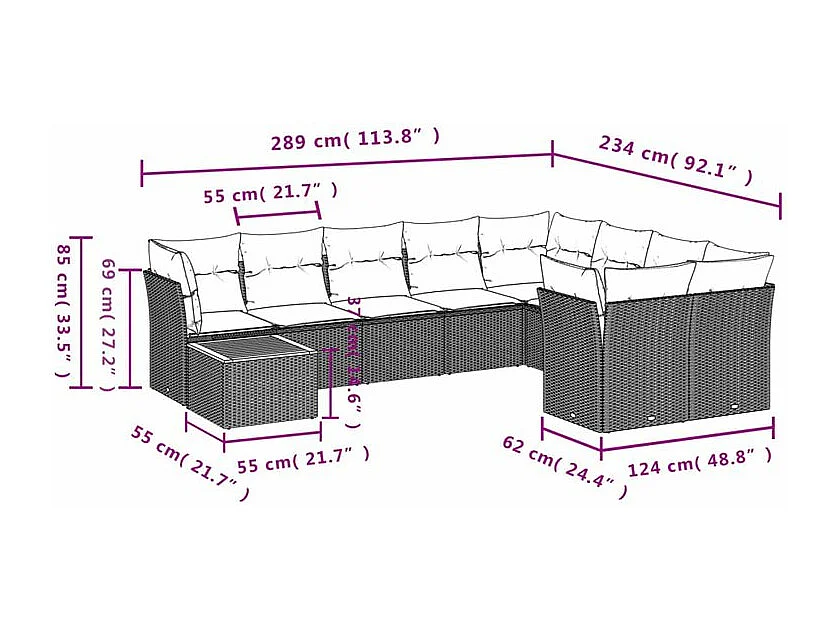 Salon de jardin 10 pcs avec coussins gris résine tressée