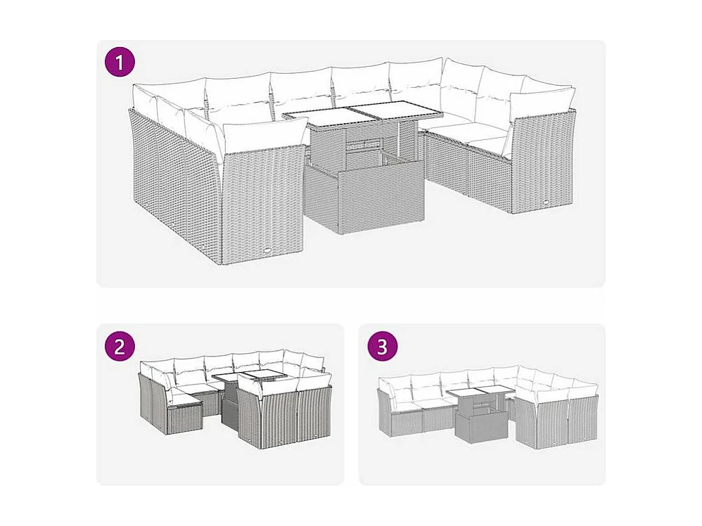 Salon de jardin 10 pcs avec coussins marron résine tressée