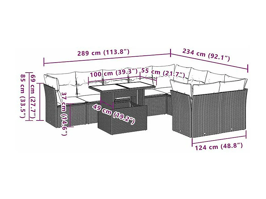 Salon de jardin 10 pcs avec coussins marron résine tressée