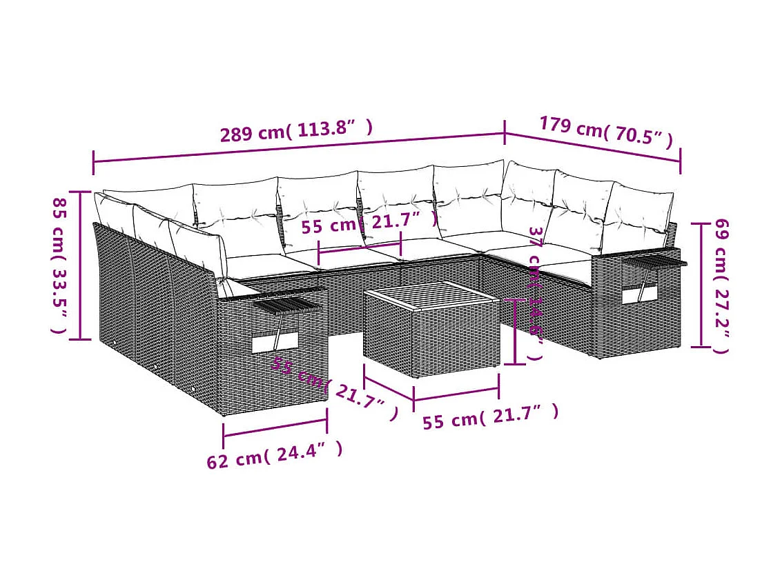 Salon de jardin 10 pcs avec coussins noir résine tressée