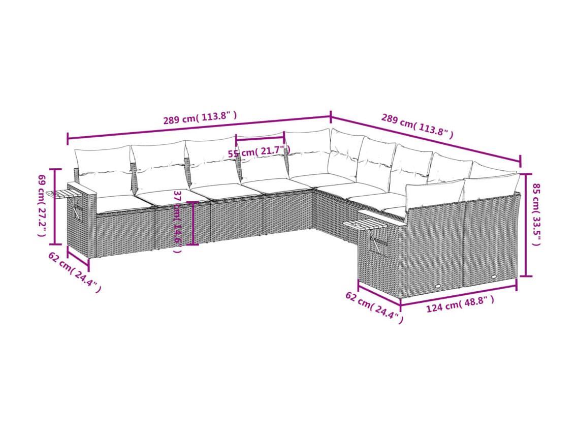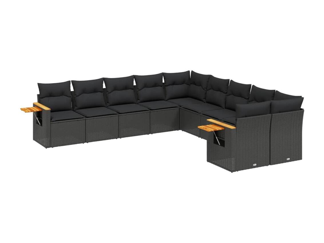Salon de jardin 10 pcs avec coussins noir résine tressée