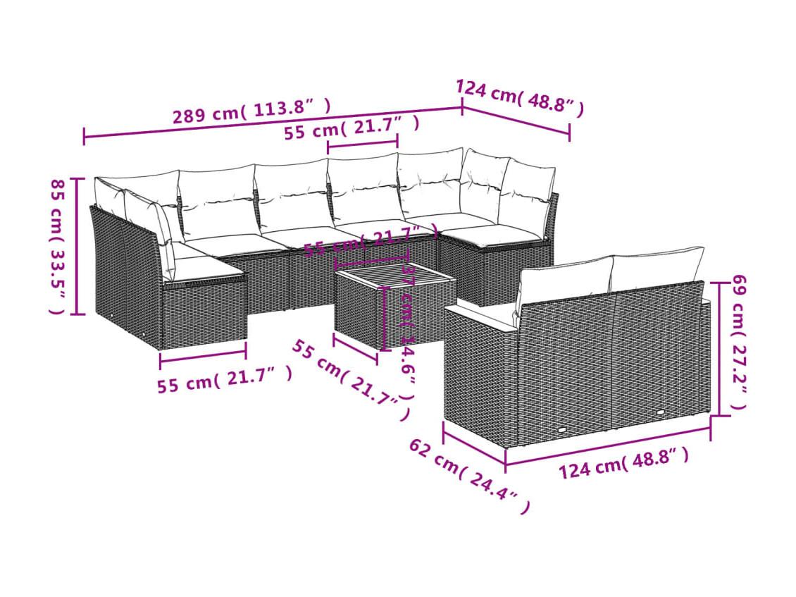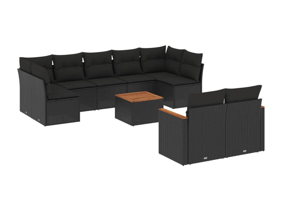 Salon de jardin 10 pcs avec coussins noir résine tressée